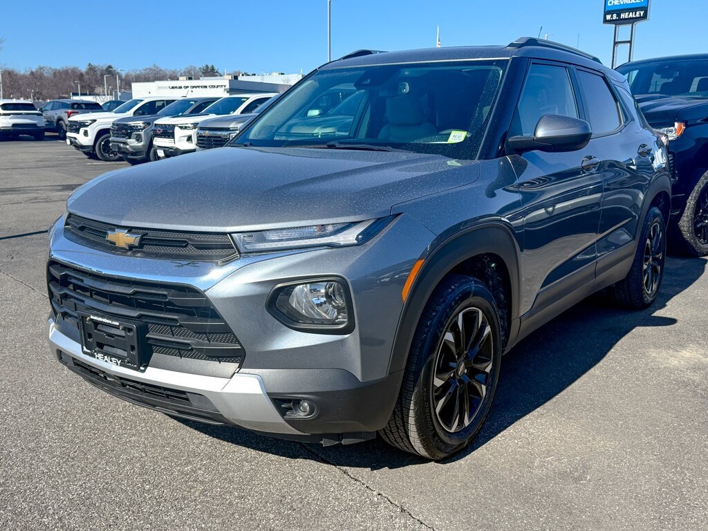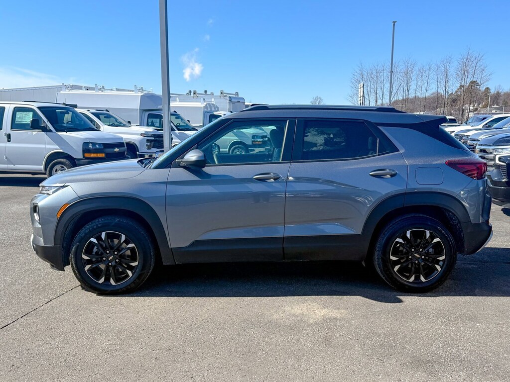 Certified. Satin Steel Metallic 2021 Chevrolet TrailBlazer LT AWD 9-Speed Automatic 1.3L Ecotec Turbo DOHC SIDI w/VVT 1 Type-A & 1 Type-C USB Charging-Only Ports, 120-Volt Power Outlet, 2-Way Power Driver Lumbar Seat Adjuster, 3.17 Axle Ratio, 4-Way Manual Front Passenger Seat Adjuster, 4-Wheel Disc Brakes, 6 Speakers, 6-Speaker Audio System Feature w/Amplifier, 8-Way Power Driver Seat Adjuster, 8 Diagonal Color Touchscreen Display, ABS brakes, Air Conditioning, Alloy wheels, AM/FM radio, Apple CarPlay/Android Auto, Auto High-beam Headlights, Brake assist, Bumpers: body-color, Cabin Humidity Sensor, Cloth Seat Trim, Compass, Convenience Package, Delay-off headlights, Driver & Front Passenger Illuminated Vanity Mirrors, Driver Confidence Package, Driver door bin, Driver vanity mirror, Dual front impact airbags, Dual front side impact airbags, Dual-Pane Panoramic Power Sunroof, Electronic Stability Control, Emergency communication system: OnStar and Chevrolet connected services capable, Exterior Parking Camera Rear, Flat-Folding Front Passenger Seatback, Front anti-roll bar, Front Bucket Seats, Front Center Armrest, Front fog lights, Front License Plate Bracket, Front reading lights, Front wheel independent suspension, Fully automatic headlights, Hands-Free Power Programmable Liftgate, Heated door mirrors, Heated Driver & Front Passenger Seats, Heated front seats, Illuminated entry, Inside Rear-View Auto-Dimming Mirror, Knee airbag, Lane Change Alert w/Side Blind Zone Alert, Low tire pressure warning, Occupant sensing airbag, Overhead airbag, Overhead console, Panic alarm, Passenger door bin, Passenger vanity mirror, Power door mirrors, Power driver seat, Power steering, Power windows, Preferred Equipment Group 1LT, Radio data system, Radio: Chevrolet Infotainment 3 System, Rear Cross Traffic Alert, Rear Park Assist, Rear side impact airbag, Rear window defroster, Rear window wiper, Remote keyless entry, Ride & Handling Suspension, Roof rack: rails only, Security system, Single-Zone Auto Climate Control Air Conditioning, SiriusXM Radio, Speed control, Split folding rear seat, Spoiler, Steering wheel mounted audio controls, Sun & Liftgate Package, Tachometer, Telescoping steering wheel, Tilt steering wheel, Traction control, Trip computer, Variably intermittent wipers, Wheels: 17 High Gloss Black Machined Aluminum, Wireless Apple CarPlay/Android Auto.