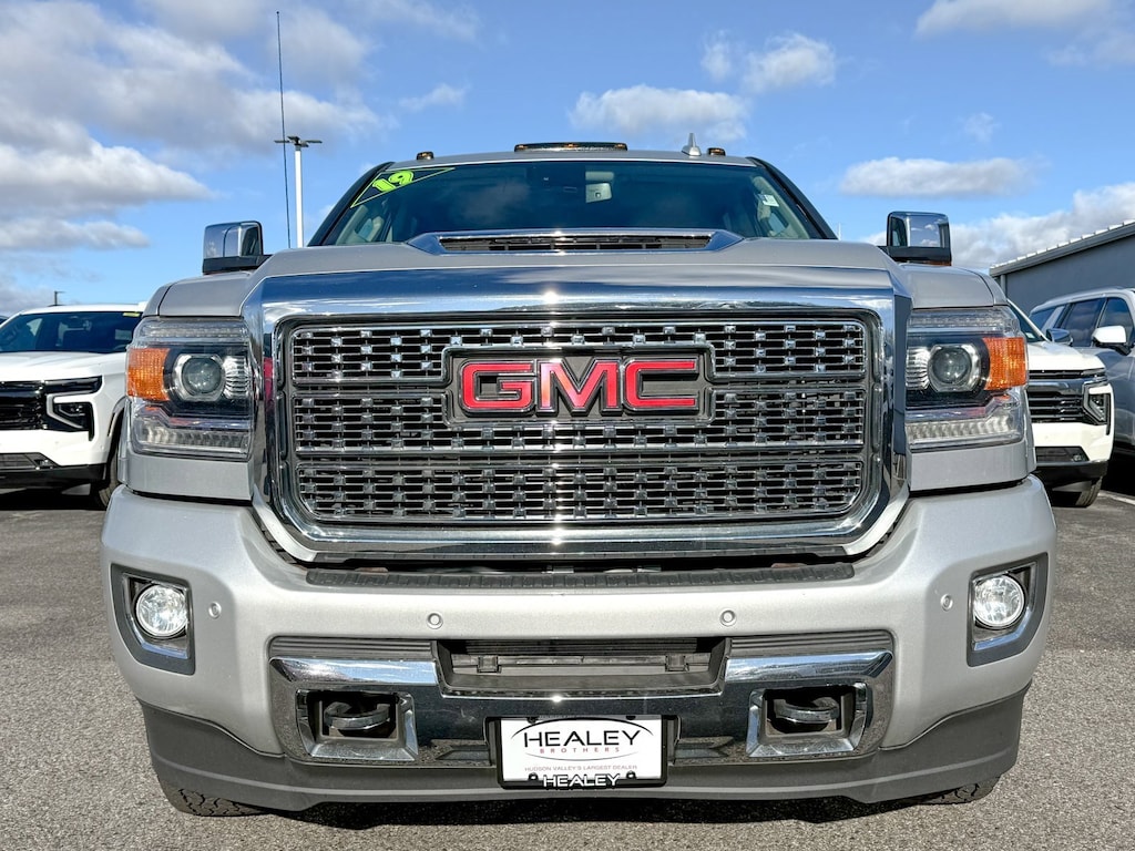 Certified. Quicksilver Metallic 2019 GMC Sierra 3500HD Denali 4WD Allison 1000 6-Speed Automatic Duramax 6.6L V8 Turbodiesel Driver Alert Package, Forward Collision Alert, Gooseneck/5th Wheel Prep Package, Lane Departure Warning System, Trailering Equipment, 1-Piece Radiator Grille & Fr Bumper Opening Cover, 110-Volt AC Power Outlet, 150 Amps Alternator, 18 Chromed Aluminum Wheels, 4-Wheel Disc Brakes, 7 Speakers, 8 Multi-Color Customizable Driver Display, ABS brakes, Adjustable pedals, Air Conditioning, Alloy wheels, AM/FM radio: SiriusXM, Apple CarPlay/Android Auto, Auto-Dimming Inside Rear-View Mirror, Auto-dimming Rear-View mirror, Automatic temperature control, Body Color Wheel Arch Moldings (LPO), Bodyside moldings, Bose Speaker System, Brake assist, Bumpers: body-color, CD player, Chrome Bodyside Moldings, Chrome Door Handles, Chrome Power-Adjustable Heated Outside Mirrors, Chrome Recovery Hooks, Chrome wheels, Color-Keyed Carpeted 1st & 2nd Row Floor Mats, Color-Keyed Carpeting Floor Covering, Compass, Deep-Tinted Glass, Delay-off headlights, Driver & Front Passenger Visors, Driver door bin, Driver vanity mirror, Dual 150 Amps & 220 Amps Each Alternator, Dual front impact airbags, Dual front side impact airbags, Dual-Zone Automatic Climate Control, Duramax Plus Package, Electric Rear-Window Defogger, Electronic Shift Transfer Case, Electronic Stability Control, Emergency communication system: OnStar and GMC connected services capable, Engine Block Heater, Exhaust Brake, Exterior Parking Camera Rear, EZ-Lift & Lower Tailgate, Floor Mounted Console, Front anti-roll bar, Front Body-Color Bumper, Front Bucket Seats, Front Center Armrest, Front dual zone A/C, Front fog lights, Front Frame-Mounted Black Recovery Hooks, Front Full Feature Bucket Seats, Front Halogen Fog Lamps, Front License Plate Kit, Front reading lights, Front wheel independent suspension, Fully automatic headlights, Garage door transmitter, GMC 4G LTE, GMC Connected Access, HD Radio, Heated & Ventilated Front Seating, Heated door mirrors, Heated Driver & Front Passenger Seats, Heated front seats, Heated steering wheel, High Idle Switch, High-Intensity Discharge Headlights, Hill Descent Control, Illuminated entry, Leather Wrapped Heated Steering Wheel, Manual Tilt-Wheel/Telescoping Steering Column, Memory seat, Navigation System, Occupant sensing airbag, Off-Road Suspension Package, OnStar & GMC Connected Services Capable, Outside temperature display, Overhead airbag, Overhead console, Panic alarm, Passenger door bin, Passenger vanity mirror, Pedal memory, Perforated Leather-Appointed Seat Trim, Power Adjustable Pedals, Power door mirrors, Power driver seat, Power passenger seat, Power Sliding Rear Window w/Defogger, Power steering, Power Sunroof, Power windows, Preferred Equipment Group 5SA, Premium audio system: GMC Infotainment System, Radio: AM/FM/SiriusXM w/GMC Infotainment & Nav, Rear 60/40 Folding Bench Seat (Folds Up), Rear Body-Color Bumper w/Bumper CornerSteps, Rear reading lights, Rear seat center armrest, Rear step bumper, Rear Vision Camera, Rear Wheelhouse Liners, Rear window defroster, Remote Keyless Entry, Remote keyless entry, Remote Locking Tailgate, Remote Vehicle Starter System, Security system, Single-Slot CD/MP3 Player, SiriusXM Radio, Smoked Amber Roof Marker Lamps, Speed control, Speed-sensing steering, Split folding rear seat, Standard Suspension Package, Steering Wheel Audio Controls, Steering wheel mounted audio controls, Tachometer, Telescoping steering wheel, Tilt steering wheel, Traction control, Trip computer, Turn signal indicator mirrors, UltraSonic Front & Rear Park Assist, Unauthorized Entry Theft-Deterrent System, Universal Home Remote, Variably intermittent wipers, Ventilated front seats, Voltmeter, Wireless Charging, Driver Alert Package, Forward Collision Alert, Gooseneck/5th Wheel Prep Package, Lane Departure Warning System, Trailering Equipment.