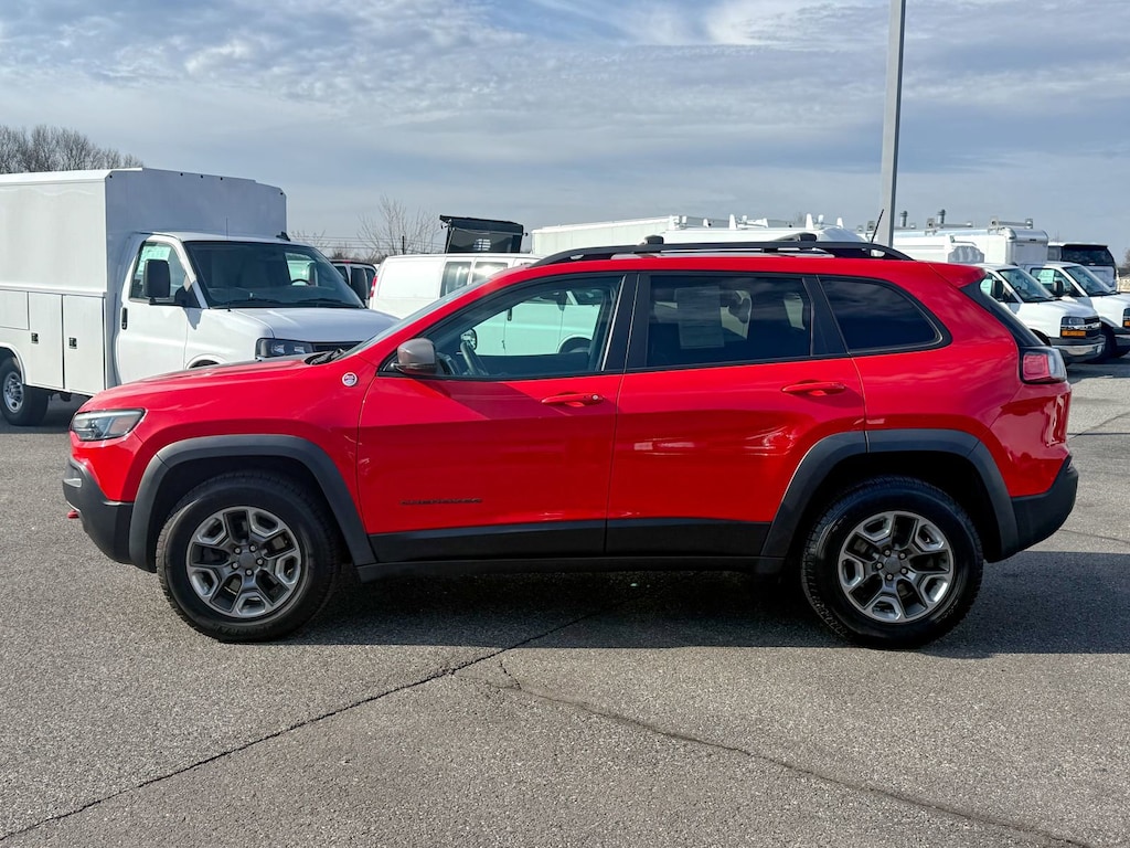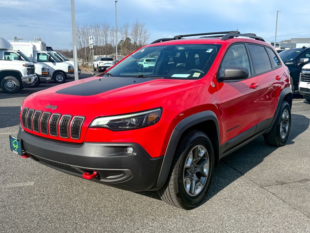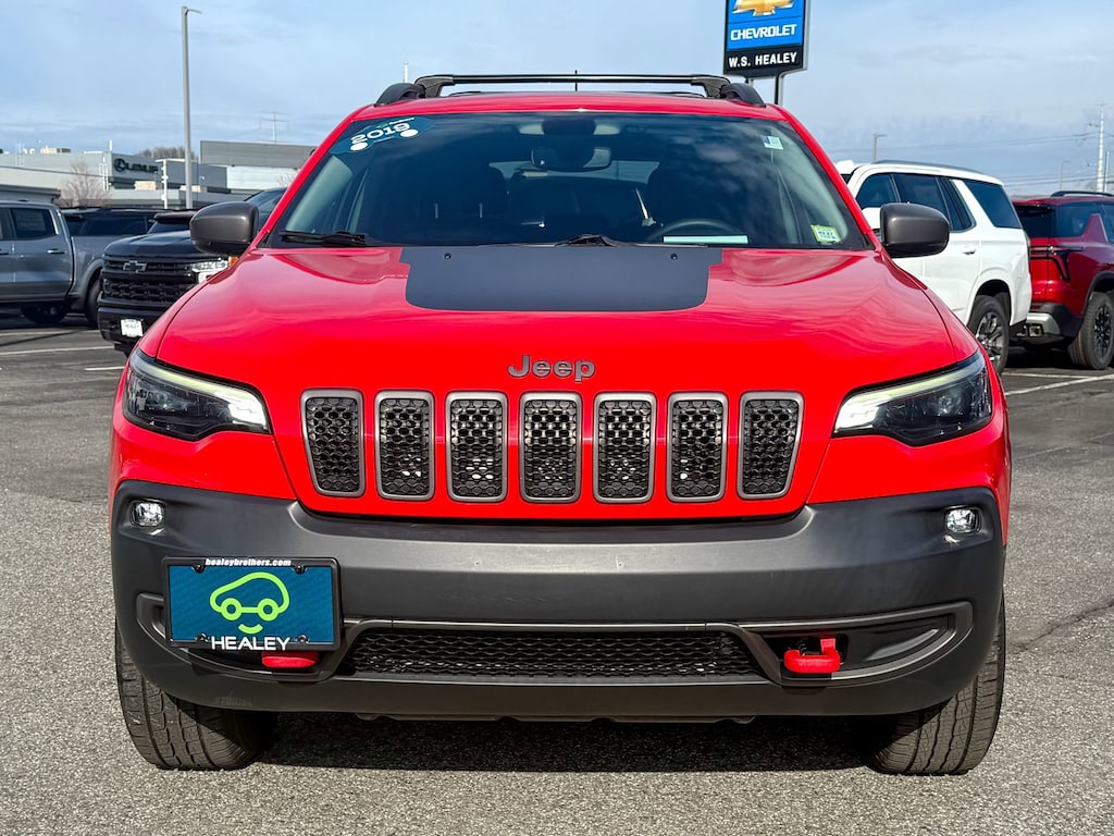 Certified. Firecracker Red Clearcoat 2019 Jeep Cherokee Trailhawk 4WD 9-Speed 948TE Automatic 3.2L V6 7 & 4 Pin Wiring Harness, Auto-Dimming Rear-View Mirror, Auxiliary Transmission Oil Cooler, Class III Receiver Hitch, Cold Weather Group, Comfort/Convenience Group, Engine Block Heater, Heated Front Seats, Heated Steering Wheel, Power Front/Fixed Rear Full Sunroof, Power Liftgate, Remote Start System, Security Alarm, Trailer Tow Group, Trailer Tow Wiring Harness, Universal Garage Door Opener, Windshield Wiper De-Icer, 1-Year SiriusXM Guardian Trial, 3.517 Axle Ratio, 4-Wheel Disc Brakes, 4G LTE Wi-Fi Hot Spot, 5-Year SiriusXM Traffic Service, 5-Year SiriusXM Travel Link Service, 6 Speakers, 8.4 Touchscreen Display, ABS brakes, Air Conditioning, Alloy wheels, AM/FM radio: SiriusXM, Anti-whiplash front head restraints, Apple CarPlay, Apple CarPlay/Android Auto, Automatic temperature control, AutoStick Automatic Transmission, Brake assist, Cloth/Premium Vinyl Bucket Seats, Compass, Delay-off headlights, Driver door bin, Driver vanity mirror, Dual Bright Exhaust Tips, Dual front impact airbags, Dual front side impact airbags, Electronic Stability Control, Engine Oil Cooler, Exterior Mirrors Courtesy Lamps, Exterior Mirrors w/Supplemental Signals, For Details Visit DriveUconnect.com, Four wheel independent suspension, Front anti-roll bar, Front Bucket Seats, Front Center Armrest, Front dual zone A/C, Front fog lights, Front reading lights, Fully automatic headlights, Google Android Auto, GPS Antenna Input, GPS Navigation, HD Radio, Heated door mirrors, Hill Descent Control, Illuminated entry, Integrated Voice Command w/Bluetooth, Knee airbag, Leather Shift Knob, Low tire pressure warning, Occupant sensing airbag, Off Road Suspension, Outside temperature display, Overhead airbag, Overhead console, Panic alarm, ParkView Rear Back-Up Camera, Passenger door bin, Passenger vanity mirror, Power door mirrors, Power driver seat, Power steering, Power windows, Premium Alpine Speaker System, Quick Order Package 27E Trailhawk, Radio data system, Radio: Uconnect 4 w/8.4 Display, Radio: Uconnect 4C Nav w/8.4 Display, Rear anti-roll bar, Rear reading lights, Rear seat center armrest, Rear side impact airbag, Rear window defroster, Rear window wiper, Remote keyless entry, Roof rack: rails only, SiriusXM Satellite Radio, SiriusXM Traffic Plus, SiriusXM Travel Link, Speed control, Speed-sensing steering, Split folding rear seat, Spoiler, Steering wheel mounted audio controls, Stop-Start Multiple VSM System, Tachometer, Telescoping steering wheel, Tilt steering wheel, Traction control, Trip computer, Turn signal indicator mirrors, USB Host Flip, Variably intermittent wipers, Voltmeter, Wheels: 17 x 7.5 Painted/Polished Aluminum, One Owner, 7 & 4 Pin Wiring Harness, Auto-Dimming Rear-View Mirror, Auxiliary Transmission Oil Cooler, Class III Receiver Hitch, Cold Weather Group, Comfort/Convenience Group, Engine Block Heater, Heated Front Seats, Heated Steering Wheel, Power Front/Fixed Rear Full Sunroof, Power Liftgate, Remote Start System, Security Alarm, Trailer Tow Group, Trailer Tow Wiring Harness, Universal Garage Door Opener, Windshield Wiper De-Icer.Don't be tricked by below market priced vehicles that charge exorbitant documentation and prep fees. Our pricing is fair, concise and the only documentation fee charged is $175. Check our Google reviews and allow our customers to tell you where you should consider purchasing a pre-owned vehicle in the Tri-State area.Certification Program Details: Bumper-to-Bumper Limited Warranty 6-month/6,000-mile Limited Bumper-to-Bumper Warranty,* whichever comes first, in addition to any remaining original factory Bumper-to-Bumper warranty. See participating dealer and warranty booklet for limited warranty eligibility and coverage details, including limitations and exclusions. *Except for non-GM vehicles in the State of California, where coverage will be provided by a vehicle service contract.