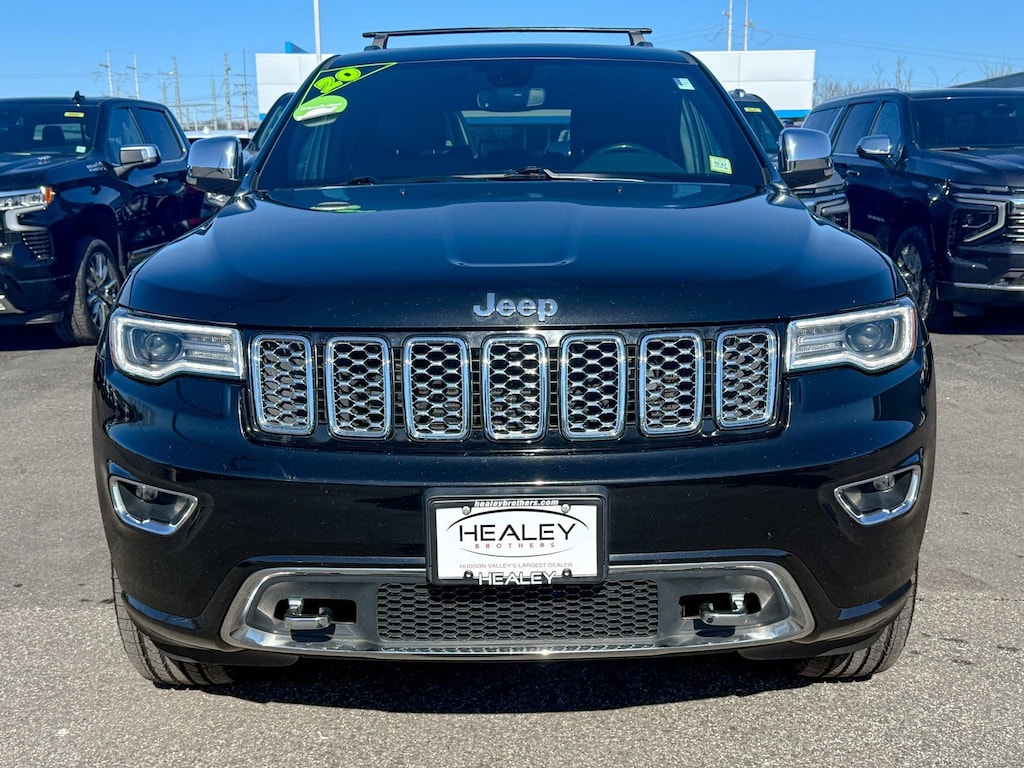 Certified. Diamond Black Crystal Pearlcoat 2020 Jeep Grand Cherokee Overland 4WD 8-Speed Automatic 3.6L V6 24V VVT Power moonroof, 1-Year SiriusXM Guardian Trial, 10 Speakers, 3.45 Rear Axle Ratio, 4-Wheel Disc Brakes, 4G LTE Wi-Fi Hot Spot, 7 & 4 Pin Wiring Harness, 8.4 Touchscreen Display, ABS brakes, Active Noise Control System, Air Conditioning, Alloy wheels, AM/FM radio: SiriusXM, Anti-whiplash front head restraints, Apple CarPlay, Apple CarPlay/Android Auto, Audio memory, Auto High-beam Headlights, Auto-dimming door mirrors, Auto-dimming Rear-View mirror, Auto-leveling suspension, Automatic temperature control, Brake assist, Bumpers: body-color, Class IV Receiver Hitch, Compass, Delay-off headlights, Driver door bin, Driver vanity mirror, Dual Bright Exhaust Tips, Dual front impact airbags, Dual front side impact airbags, Electronic Stability Control, Emergency communication system: SiriusXM Guardian, Engine Oil Cooler, Four wheel independent suspension, Front anti-roll bar, Front Bucket Seats, Front Center Armrest w/Storage, Front dual zone A/C, Front fog lights, Front License Plate Bracket, Front reading lights, Fully automatic headlights, Garage door transmitter, Genuine wood dashboard insert, Google Android Auto, GPS Antenna Input, GPS Navigation, HD Radio, Heated door mirrors, Heated front seats, Heated rear seats, Heated steering wheel, Heavy-Duty Engine Cooling, High intensity discharge headlights: Bi-Xenon, Illuminated entry, Integrated Center Stack Radio, Integrated Voice Command w/Bluetooth, Knee airbag, Leather Shift Knob, Leather steering wheel, Leather Trim Seats w/Edge Welting, Low tire pressure warning, Manufacturer's Statement of Origin (DISC), Memory seat, Navigation System, Normal Duty Suspension, Occupant sensing airbag, Outside temperature display, Overhead airbag, Overhead console, Panic alarm, ParkView Rear Back-Up Camera, Passenger door bin, Passenger vanity mirror, Power door mirrors, Power driver seat, Power Liftgate, Power passenger seat, Power steering, Power windows, Quick Order Package 2BP, Radio data system, Radio: Uconnect 4C Nav w/8.4 Display, Rain sensing wipers, Rain Sensitive Windshield Wipers, Rear anti-roll bar, Rear reading lights, Rear seat center armrest, Rear window defroster, Rear window wiper, Remote keyless entry, Security system, SiriusXM Satellite Radio, SiriusXM Traffic Plus, SiriusXM Travel Link, Speed control, Speed-sensing steering, Speed-Sensitive Wipers, Split folding rear seat, Spoiler, Steering wheel mounted audio controls, Tachometer, Telescoping steering wheel, Tilt steering wheel, Traction control, Trip computer, Turn signal indicator mirrors, USB Host Flip, Variably intermittent wipers, Ventilated front seats, Voltmeter, Wheels: 20 x 8.0 Polished/Tech Gray Aluminum, One Owner, Power moonroof.