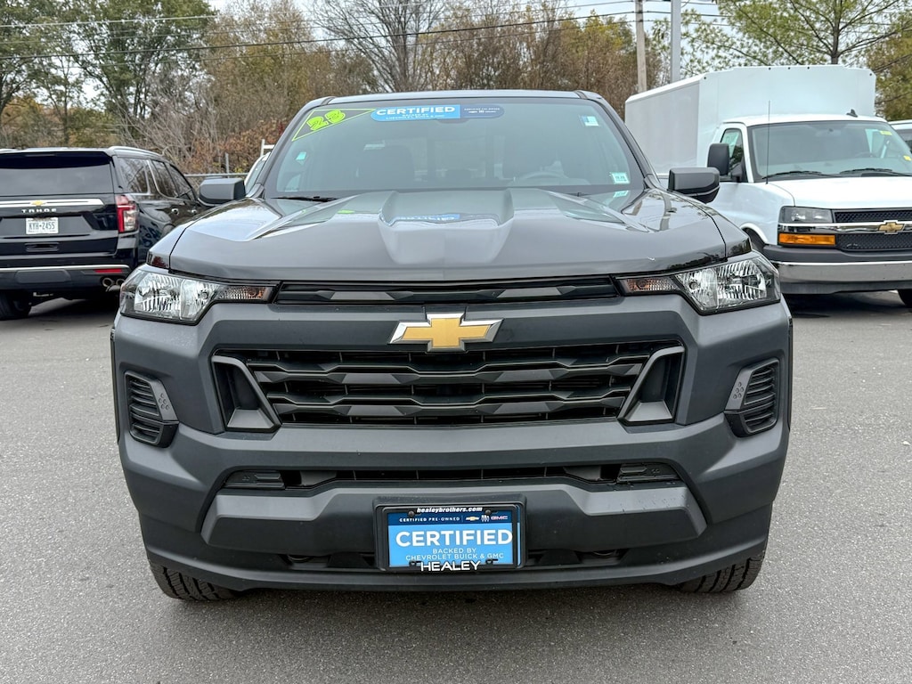 Certified. Black 2023 Chevrolet Colorado Work Truck 4WD 8-Speed Automatic 2.7L Turbo Automatic Emergency Braking, Chevy Safety Assist, Electronic Automatic Cruise Control, Following Distance Indicator, Forward Collision Alert, Front Pedestrian & Bicyclist Braking, Heavy-Duty Trailering Package, Integrated Trailer Brake Controller, IntelliBeam Automatic High Beam On/Off, Lane Keep Assist w/Lane Departure Warning, Manual Rear-Sliding Window, Rear-Window Electric Defogger, Remote Locking Tailgate, WT Convenience Package, 220 Amp Generator, 3.42 Rear Axle Ratio, 4-Way Manual Passenger Seat Adjuster, 4-Wheel Disc Brakes, 6 Speakers, 6-Speaker Audio System Feature, 6-Way Manual Driver Seat Adjuster, ABS brakes, Air Conditioning, AM/FM radio: SiriusXM, Apple CarPlay/Android Auto, Auto High-beam Headlights, Brake assist, Cloth Seat Trim, Delay-off headlights, Driver door bin, Driver vanity mirror, Dual front impact airbags, Dual front side impact airbags, Electronic Stability Control, Front anti-roll bar, Front Bucket Seats, Front Center Armrest, Front Floor Console Compartment w/Cup Holders, Front License Plate Kit, Front wheel independent suspension, Low tire pressure warning, Navigation System, Occupant sensing airbag, Overhead airbag, Panic alarm, Passenger door bin, Passenger vanity mirror, Power door mirrors, Power steering, Power windows, Preferred Equipment Group 4WT, Radio data system, Radio: 11.3 Diagonal Advanced Color LCD Display, Rear Air Vents, Rear step bumper, Remote keyless entry, Security system, SiriusXM Radio, Speed-sensing steering, Split folding rear seat, Steering Wheel Mounted Audio Controls, Steering wheel mounted audio controls, Tachometer, Tilt steering wheel, Traction control, Trip computer, Variably intermittent wipers, Wheels: 17 x 8 Ultra Silver Metallic Steel, Wireless Phone Projection, Automatic Emergency Braking, Chevy Safety Assist, Electronic Automatic Cruise Control, Following Distance Indicator, Forward Collision Alert, Front Pedestrian & Bicyclist Braking, Heavy-Duty Trailering Package, Integrated Trailer Brake Controller, IntelliBeam Automatic High Beam On/Off, Lane Keep Assist w/Lane Departure Warning, Manual Rear-Sliding Window, Rear-Window Electric Defogger, Remote Locking Tailgate, WT Convenience Package.