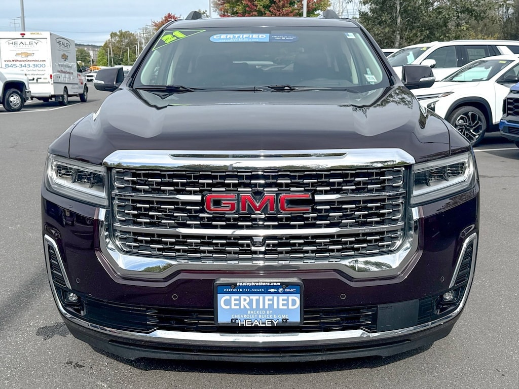 Certified. Red Mahogany Metallic 2021 GMC Acadia Denali AWD 9-Speed Automatic 3.6L V6 SIDI Adaptive Cruise Control, Adaptive Ride Control, Denali Technology Package, Denali Ultimate Package, Dual SkyScape 2-Panel Power Sunroof, Enhanced Automatic Emergency Braking, HD Surround Vision, Power Liftgate, Rear Camera Mirror, Rear Camera Mirror Washer, Trailering Package, 170 Amp Alternator, 1st & 2nd Row All-Weather Floor Liner (LPO), 20 Ultra Bright Machined Aluminum Wheels, 3.49 Final Drive Axle Ratio, 3rd Row All-Weather Floor Liner (LPO), 3rd row seats: split-bench, 4-Wheel Disc Brakes, 6-Passenger (2-2-2 Seating Configuration), 8 Speakers, 8-Way Power Driver Seat Adjuster, 8-Way Power Passenger Seat Adjuster, ABS brakes, Air Conditioning, Alloy wheels, AM/FM radio: SiriusXM with 360L, Apple CarPlay/Android Auto, Auto High-beam Headlights, Auto-dimming door mirrors, Auto-dimming Rear-View mirror, Automatic temperature control, Bose Premium 8-Speaker Audio System Feature, Brake assist, Bumpers: body-color, Compass, Delay-off headlights, Driver door bin, Driver vanity mirror, Dual front impact airbags, Dual front side impact airbags, Electronic Cruise Control w/Set & Resume Speed, Electronic Stability Control, Emergency communication system: OnStar and GMC connected services capable, Floor Liner Package (LPO), Four wheel independent suspension, Front anti-roll bar, Front Bucket Seats, Front Center Armrest, Front dual zone A/C, Front fog lights, Front License Plate Bracket, Front reading lights, Fully automatic headlights, Garage door transmitter, HD Radio, Heads-Up Display, Heated & Ventilated Driver & Front Passenger Seats, Heated door mirrors, Heated Driver & Front Passenger Seats, Heated front seats, Heated rear seats, Heated steering wheel, Heavy-Duty Cooling System, Hitch Guidance w/Hitch View, Illuminated entry, Integrated Cargo Liner (LPO), Knee airbag, Low tire pressure warning, Memory seat, Navigation System, Occupant sensing airbag, Outside temperature display, Overhead airbag, Overhead console, Panic alarm, Passenger door bin, Passenger vanity mirror, Perforated Leather-Appointed Seat Trim, Performance Ride & Handling Suspension, Power door mirrors, Power Driver Lumbar Control Seat Adjuster, Power driver seat, Power Passenger Lumbar Control Seat Adjuster, Power passenger seat, Power steering, Power windows, Preferred Equipment Group 5SA, Premium audio system: GMC Infotainment System, Radio data system, Radio: AM/FM 8 Diagonal Multi-Touch Navigation, Rear air conditioning, Rear anti-roll bar, Rear reading lights, Rear window defroster, Rear window wiper, Remote keyless entry, Roof rack: rails only, Security system, SiriusXM w/360L, Speed control, Speed-sensing steering, Spoiler, Steering wheel memory, Steering wheel mounted audio controls, Tachometer, Telescoping steering wheel, Tilt steering wheel, Traction control, Trailering Assist Guidelines, Trip computer, Turn signal indicator mirrors, Variably intermittent wipers, Ventilated front seats, Voltmeter, Wireless Apple CarPlay/Wireless Android Auto, Adaptive Cruise Control, Adaptive Ride Control, Denali Technology Package, Denali Ultimate Package, Dual SkyScape 2-Panel Power Sunroof, Enhanced Automatic Emergency Braking, HD Surround Vision, Power Liftgate, Rear Camera Mirror, Rear Camera Mirror Washer, Trailering Package.Don't be tricked by below market priced vehicles that charge exorbitant documentation and prep fees. Our pricing is fair, concise and the only documentation fee charged is $175. Check our Google reviews and allow our customers to tell you where you should consider purchasing a pre-owned vehicle in the Tri-State area.GM Details:* Limited Warranty: 12 Month/12,000 Mile (whichever comes first) from certified purchase date* Warranty Deductible: $0* Powertrain Limited Warranty: 72 Month/100,000 Mile (whichever comes first) from original in-service date* Roadside Assistance* 172 Point Inspection* Tran