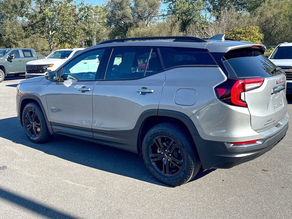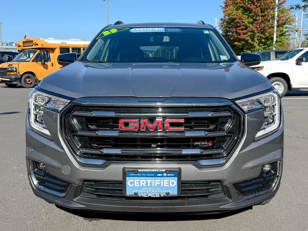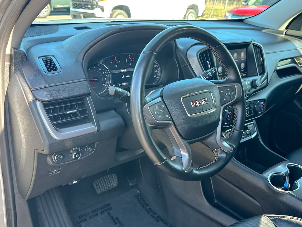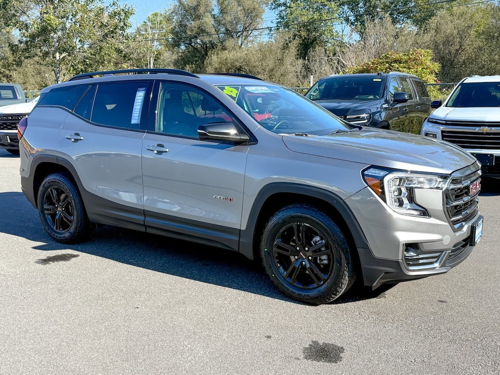 Certified. Sterling Metallic 2023 GMC Terrain AT4 AWD 9-Speed Automatic 1.5L DOHC 2 USB Data Ports, 2 USB Data Ports w/SD Card Reader, 3.47 Axle Ratio, 4-Wheel Disc Brakes, 6 Speakers, 6-Speaker Audio System Feature, 6-Way Power Front Passenger Seat, 8-Way Power Driver Seat Adjuster, ABS brakes, Air Conditioning, Alloy wheels, AM/FM radio: SiriusXM, Auto High-beam Headlights, Auto-dimming Rear-View mirror, Automatic temperature control, Bluetooth® For Phone, Brake assist, Bumpers: body-color, Compass, Delay-off headlights, Deleted 3 Years of OnStar & Connected Services Plan, Driver & Front Passenger Heated Seats, Driver door bin, Driver vanity mirror, Dual front impact airbags, Dual front side impact airbags, Electronic Stability Control, Emergency communication system: OnStar and GMC connected services capable, Four wheel independent suspension, Front anti-roll bar, Front Bucket Seats, Front Center Armrest, Front dual zone A/C, Front fog lights, Front Passenger 2-Way Power Lumbar, Front reading lights, Fully automatic headlights, Garage door transmitter, Heated door mirrors, Heated front seats, Heated steering wheel, Illuminated entry, Lane Departure Warning System, License Plate Front Mounting Package, Low tire pressure warning, Memory seat, Occupant sensing airbag, Outside temperature display, Overhead airbag, Overhead console, Panic alarm, Passenger door bin, Passenger vanity mirror, Perforated Leather-Appointed Seat Trim w/AT4 Logo, Power door mirrors, Power Driver Lumbar Control, Power driver seat, Power Liftgate, Power passenger seat, Power steering, Power windows, Preferred Equipment Group 4SC, Radio data system, Radio: GMC Infotainment Audio System w/8 Display, Rear anti-roll bar, Rear seat center armrest, Rear window defroster, Rear window wiper, Remote keyless entry, Roof rack: rails only, Security system, SiriusXM Radio, Speed control, Speed-sensing steering, Split folding rear seat, Spoiler, Steering wheel mounted audio controls, Tachometer, Telescoping steering wheel, Tilt steering wheel, Traction control, Trip computer, Turn signal indicator mirrors, Variably intermittent wipers, Wheels: 17 x 7 Gloss Black Aluminum, Wireless Apple CarPlay/Wireless Android Auto.