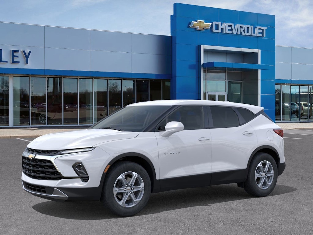Summit White 2025 Chevrolet Blazer LT AWD 9-Speed Automatic with Overdrive 2.0L Turbocharged 170 Amp Alternator, 1st & 2nd Row All-Weather Floor Liners (LPO), 3.47 Final Drive Axle Ratio, 4-Way Manual Front Passenger Seat Adjuster, 4-Wheel Disc Brakes, 6 Speakers, 6-Speaker Audio System Feature, 8-Way Power Driver Seat Adjuster, ABS brakes, Air Conditioning, Alloy wheels, AM/FM radio: SiriusXM with 360L, Apple CarPlay/Android Auto, Auto High-beam Headlights, Automatic temperature control, Brake assist, Bumpers: body-color, Cargo Package (LPO), Child-Seat-Sensing Airbag, Compass, Delay-off headlights, Driver door bin, Driver vanity mirror, Dual front impact airbags, Dual front side impact airbags, Electronic Stability Control, Emergency communication system: OnStar and Chevrolet connected services capable, Floor Liner Package (LPO), Four wheel independent suspension, Front anti-roll bar, Front Bucket Seats, Front Center Armrest, Front dual zone A/C, Front reading lights, Fully automatic headlights, Heated door mirrors, Heated Driver & Front Passenger Seats, Heated front seats, Illuminated entry, Integrated Cargo Liner (LPO), Knee airbag, Leather Shift Knob, Low tire pressure warning, Mobile Service Plus, Occupant sensing airbag, Outside temperature display, Overhead airbag, Overhead console, Panic alarm, Passenger door bin, Passenger vanity mirror, Power door mirrors, Power Driver Lumbar Control, Power driver seat, Power steering, Power windows, Preferred Equipment Group 2LT, Premium audio system: Chevrolet Infotainment 3 Plus, Premium Cloth Seat Trim, Radio data system, Radio: Chevrolet Infotainment 3 Plus System, Rear anti-roll bar, Rear reading lights, Rear seat center armrest, Rear window defroster, Rear window wiper, Remote keyless entry, Retractable Cargo Shade, Ride & Handling Suspension, Security system, SiriusXM w/360L, Speed control, Speed-sensing steering, Split folding rear seat, Spoiler, Steering wheel mounted audio controls, Stop-Start Engine Control System, Tachometer, Telescoping steering wheel, Tilt steering wheel, Traction control, Trip computer, Variably intermittent wipers, Vertical Cargo Net (LPO), Voltmeter, Wheels: 18 Grazen Metallic Aluminum.