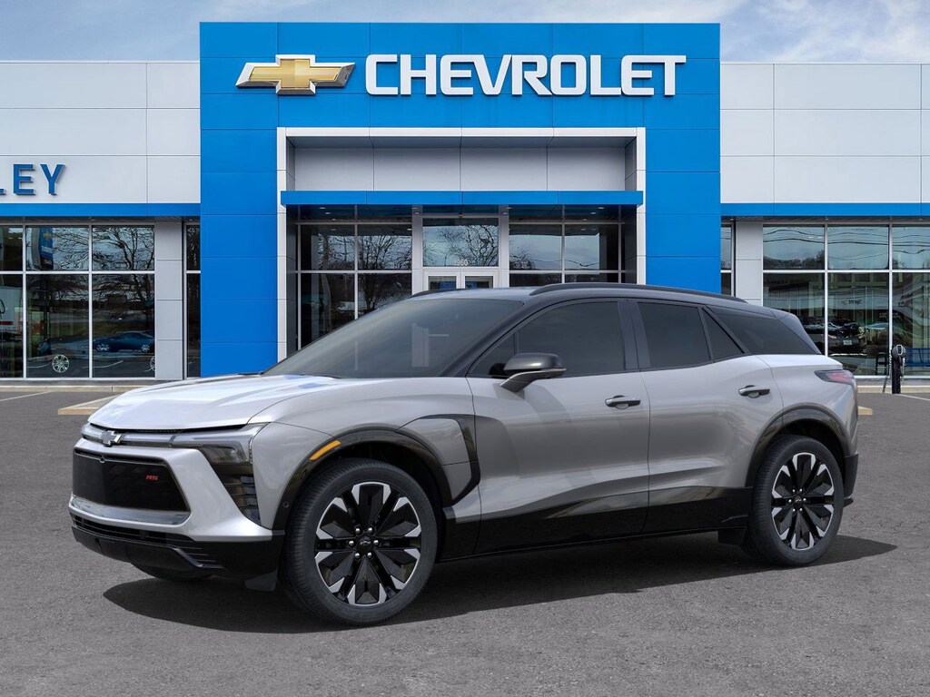 Sterling Gray Metallic 2025 Chevrolet Blazer EV RS AWD 1-Speed Automatic Electric Motor 2-Way Power Driver Lumbar Seat Adjuster, 3 Years of OnStar Digital Services/Safety Services, 3 Years SiriusXM, 4-Wheel Disc Brakes, 6 Speakers, 6-Speaker Audio System Feature, 8-Way Power Driver Seat Adjuster, ABS brakes, Air Conditioning, Alloy wheels, AM/FM radio: SiriusXM with 360L, Auto High-beam Headlights, Auto-dimming door mirrors, Auto-dimming Rear-View mirror, Automatic temperature control, Black Roof, Brake assist, Bumpers: body-color, Compass, Delay-off headlights, Driver & Front Passenger Ventilated Seats, Driver door bin, Driver vanity mirror, Dual front impact airbags, Dual front side impact airbags, Dual Level Charge Cord, Electronic Stability Control, Emergency communication system: OnStar and Chevrolet connected services capable, Enhanced Automatic Parking Assist, Four wheel independent suspension, Front anti-roll bar, Front Bucket Seats, Front Center Armrest, Front dual zone A/C, Front Passenger 2-Way Power Lumbar Seat Adjuster, Front Passenger 6-Way Power Seat Adjuster, Front reading lights, Fully automatic headlights, Garage door transmitter, Head-Up Display, Heated door mirrors, Heated Driver & Fr Passenger Seats Cushion & Seatback, Heated front seats, Heated Rear Outboard Passenger Cushion, Heated steering wheel, Heated Wiper Park, Illuminated entry, Knee airbag, Low tire pressure warning, Memory seat, Mobile Service Plus, Navigation System, Occupant sensing airbag, Outside temperature display, Overhead airbag, Overhead console, Panic alarm, Passenger door bin, Passenger vanity mirror, Perforated Suede/Evotex Seat Trim, Power door mirrors, Power driver seat, Power Dual Panel Panoramic Sliding Sunroof, Power Liftgate, Power passenger seat, Power steering, Power windows, Preferred Equipment Group 3RS, Radio: 17.7 Diagonal Advanced Color LCD Display, Rain sensing wipers, Rear anti-roll bar, Rear Camera Washer, Rear reading lights, Rear seat center armrest, Rear window defroster, Rear window wiper, Remote keyless entry, Ride & Handling Suspension, RS Convenience & Driver Confidence Package, Security system, SiriusXM w/360L Trial Subscription, Speed control, Split folding rear seat, Spoiler, Sport steering wheel, Steering wheel mounted audio controls, Super Cruise, Super Cruise Package, Telescoping steering wheel, Tilt steering wheel, Traction control, Trip computer, Turn signal indicator mirrors, Variably intermittent wipers, Ventilated front seats, Wheels: 21 Machined-Face Aluminum.