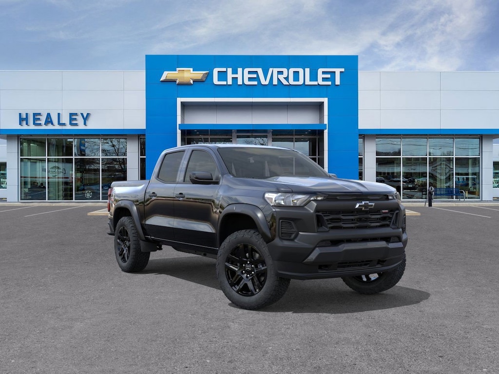 Black 2025 Chevrolet Colorado Trail Boss 4WD 8-Speed Automatic 2.7L I4 Turbocharged DOHC 16V LEV3-ULEV50 310hp 3 Years SiriusXM, 3.42 Rear Axle Ratio, 4-Spoke Wrapped Steering Wheel, 4-Way Manual Passenger Seat Adjuster, 4-Wheel Disc Brakes, 6 Speakers, 6-Speaker Audio System Feature, 6-Way Manual Driver Seat Adjuster, 8-Way Power Driver Seat Adjuster, ABS brakes, Adaptive Cruise Control, Air Conditioning, Alloy wheels, AM/FM radio: SiriusXM, Apple CarPlay/Android Auto, Auto High-beam Headlights, Automatic Emergency Braking, Automatic temperature control, Black Nameplates (LPO), Black Spray-On Bedliner w/Chevrolet Logo, Brake assist, Chevy Safety Assist, Cloth Seat Trim, Compass, Delay-off headlights, Driver door bin, Driver vanity mirror, Dual front impact airbags, Dual front side impact airbags, Electronic Stability Control, Emergency communication system: OnStar, Evotex Seat Trim, Following Distance Indicator, Forward Collision Alert, Front anti-roll bar, Front Bucket Seats, Front Center Armrest, Front dual zone A/C, Front License Plate Kit, Front Pedestrian & Bicyclist Braking, Front wheel independent suspension, HD Surround Vision, Heated door mirrors, Heated Driver & Front Passenger Seats, Heated Steering Wheel, Illuminated entry, IntelliBeam Automatic High Beam On/Off, Lane Keep Assist w/Lane Departure Warning, Low tire pressure warning, Mobile Service Plus, Navigation System, Occupant sensing airbag, Outside temperature display, Overhead airbag, Overhead console, Panic alarm, Passenger door bin, Passenger vanity mirror, Power door mirrors, Power Driver Lumbar Control Seat Adjuster, Power steering, Power windows, Preferred Equipment Group 0TR, Radio data system, Radio: 11.3 Diagonal Advanced Color LCD Display, Rear Pedestrian Alert, Rear reading lights, Rear step bumper, Rear window defroster, Remote keyless entry, Remote Vehicle Starter System, Security system, SiriusXM Trial Subscription, Speed control, Speed-sensing steering, Split folding rear seat, Steering Wheel Mounted Audio Controls, Steering wheel mounted audio controls, Tachometer, Technology Package, Tilt steering wheel, Traction control, Trail Boss Convenience Package II, Trip computer, Variably intermittent wipers, Wheels: 18 x 8.5 Black High Gloss Aluminum, Wheels: 20 x 9 High Gloss Black Aluminum, Wireless Phone Charging, Wireless Phone Projection.