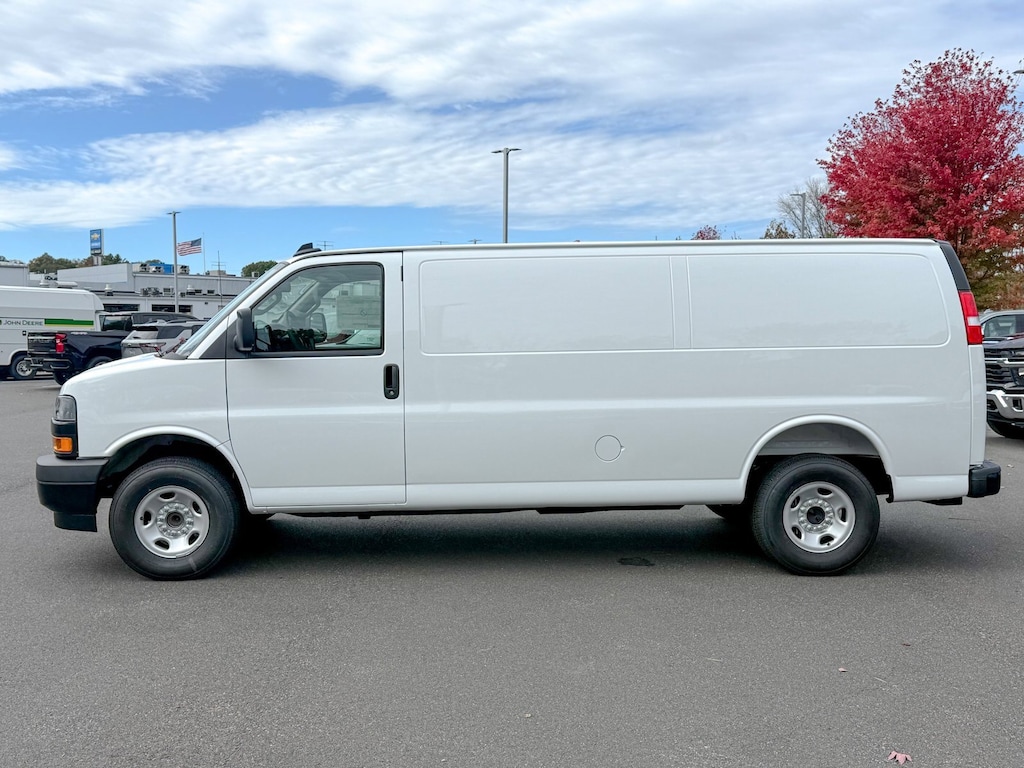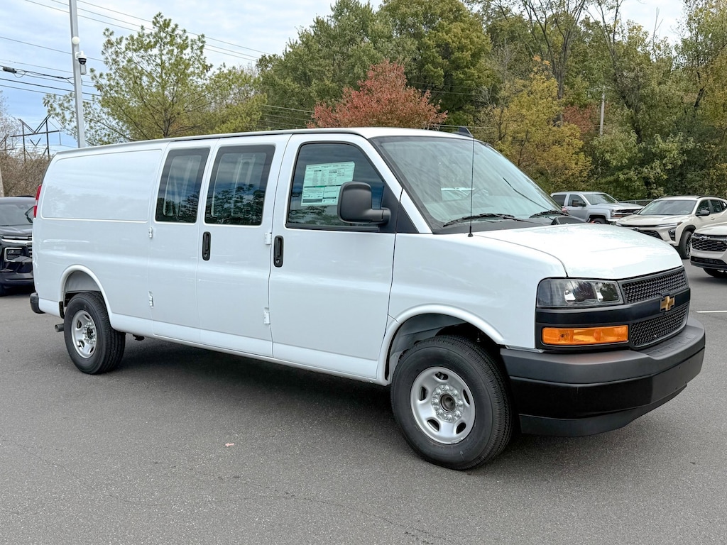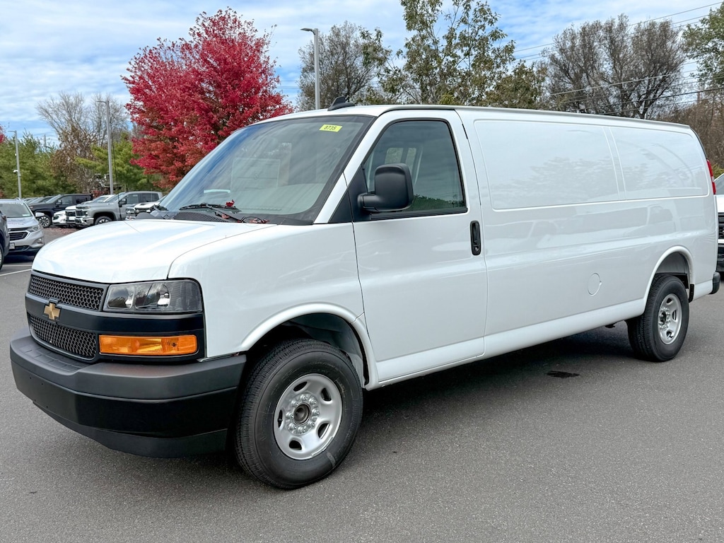 Summit White 2025 Chevrolet Express 3500 Work Van Cargo RWD Automatic with Overdrive 6.6L V8 16 x 6.5 Steel Wheels, 2 Speakers, 220 Amps Alternator, 3.42 Rear Axle Ratio, 4-Wheel Disc Brakes, a 770 CCA Heavy-Duty Maintenance-Free Battery for those cold mornings, ABS brakes, Air Conditioning, AM/FM radio, AM/FM Stereo w/MP3 Player, Cruise Control, Delay-off headlights, Deleted Mobile Service Plus, Driver & Front Passenger High-Back Bucket Seats, Driver & Front Passenger Vinyl Visors, Driver Convenience Package, Driver door bin, Driver's Seat Mounted Armrest, Dual front impact airbags, Dual front side impact airbags, Electronic Stability Control, Engine Cover Console w/Swing-Out Storage Bin, Exterior Parking Camera Rear, Fixed Rear Door Window Glass, Fixed Rear Side Door Window Glass, Front anti-roll bar, Front Bucket Seats, Front Reclining High-Back Bucket Seats, Front wheel independent suspension, Full-Length Black Rubberized-Vinyl Floor Covering, Fully automatic headlights, Heated door mirrors, Heavy-Duty Rear Locking Differential, Heavy-Duty Trailering Equipment, Low tire pressure warning, Occupant sensing airbag, Overhead airbag, Passenger cancellable airbag, Passenger door bin, Passenger seat mounted armrest, Power door mirrors, Power steering, Power windows, Preferred Equipment Group 1WT, Rear & Side Cargo Door Glass, Rear Side Door Glass Window Security Bar, Reclining Front Bucket Seats w/Inboard Armrests, Remote Keyless Entry, Remote Vehicle Starter System, Single-Zone Manual Air Conditioning, Tachometer, Theft Alarm Notification, Tilt Steering Wheel, Traction control, Trip computer, Variably intermittent wipers, Vinyl Seat Trim, Voltmeter.