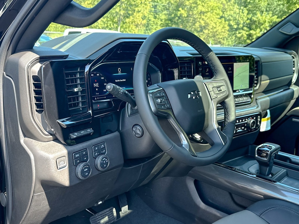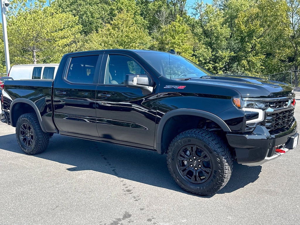 Black 2025 Chevrolet Silverado 1500 ZR2 4WD 10-Speed Automatic EcoTec3 6.2L V8 10-Way Power Driver Seat w/Lumbar, 10-Way Power Passenger Seat Adjuster w/Lumbar, 12.3 Multicolor Reconfigurable Digital Display, 120-Volt Bed Mounted Power Outlet, 120-Volt Interior Power Outlet, 15 Diagonal Multicolor Head-Up Display, 170 Amp Alternator, 2 USB Data Ports, 220 Amp Alternator, 2nd Row Heated Outboard Seats, 3.23 Rear Axle Ratio, 4-Wheel Disc Brakes, 7 Speakers, 850 Cold-Cranking Amps Heavy-Duty Battery, ABS brakes, Adaptive Cruise Control, Air Conditioning, All-Weather Floor Liner (LPO), Alloy wheels, AM/FM radio: SiriusXM with 360L, Apple CarPlay/Android Auto, Auto High-beam Headlights, Auto-dimming door mirrors, Auto-Dimming Inside Rear-View Mirror, Auto-dimming Rear-View mirror, Automatic Emergency Braking, Automatic temperature control, Auxiliary External Transmission Oil Cooler, Bed View Camera, Block heater, Bluetooth® For Phone, Brake assist, Chevytec Spray-On Black Bedliner, Color-Keyed Carpeting Floor Covering, Compass, Deep-Tinted Glass, Delay-off headlights, Deleted Mobile Service Plus, Driver door bin, Driver Memory, Driver vanity mirror, Dual Active Exhaust, Dual Exhaust, Dual front impact airbags, Dual front side impact airbags, Dual Rear USB Ports (Charge Only), Electric Rear-Window Defogger, Electronic Cruise Control, Electronic Stability Control, Electronic Transmission Range Selector Shifter, Emergency communication system: OnStar, Engine Block Heater, External Engine Oil Cooler, EZ Lift Power Lock & Release Tailgate, Floor Mounted Center Console, Following Distance Indicator, Forward Collision Alert, Front anti-roll bar, Front Bucket Seats, Front Center Armrest, Front dual zone A/C, Front fog lights, Front LED Fog Lamps, Front License Plate Kit, Front Pedestrian Braking, Front Rain-Sensing Wipers, Front reading lights, Front wheel independent suspension, Fully automatic headlights, Garage door transmitter, HD Surround Vision, Heated door mirrors, Heated Driver & Front Outboard Passenger Seats, Heated front seats, Heated rear seats, Heated Steering Wheel, Heated steering wheel, Heavy-Duty Air Filter, High Gloss Black Mirror Caps, Hill Descent Control, Hitch Guidance, Hitch Guidance w/Hitch View, Illuminated entry, In-Vehicle Trailering System App, Integrated Trailer Brake Controller, IntelliBeam Automatic High Beam On/Off, Keyless Open & Start, Lane Keep Assist w/Lane Departure Warning, LED Cargo Area Lighting, Low tire pressure warning, Manual Tilt/Telescoping Steering Column, Memory seat, Multi-Flex Tailgate, Occupant sensing airbag, OnStar Services Capable, Outside Heated Power-Adjustable Mirrors, Outside temperature display, Overhead airbag, Overhead console, Panic alarm, Passenger door bin, Passenger vanity mirror, Perforated Leather Seat Trim, Performance Red Recovery Hooks, Perimeter Lighting, Power door mirrors, Power driver seat, Power Front Passenger Windows w/Express Up/Down, Power Front Windows w/Driver Express Up/Down, Power passenger seat, Power Rear Windows w/Express Down, Power Sliding Rear Window w/Rear Defogger, Power steering, Power Sunroof, Power Tilt & Telescoping Steering Column, Power windows, Preferred Equipment Group 3LT, Premium audio system: Chevrolet Infotainment 3 Premium, Premium Bose 7-Speaker Sound System, Radio data system, Radio: Chevrolet Infotainment 3 Premium System, Rain sensing wipers, Rear Camera Mirror, Rear Cross Traffic Braking, Rear Pedestrian Alert, Rear reading lights, Rear seat center armrest, Rear step bumper, Rear Wheelhouse Liners, Rear window defroster, Remote keyless entry, Remote Vehicle Starter System, Safety Alert Seat, Security system, SiriusXM w/360L Trial Subscription, Speed control, Speed-sensing steering, Split folding rear seat, Standard Tailgate, Steering Wheel Audio Controls, Steering wheel mounted audio controls, Tachometer, Technology Package, Teen Driver, Telescoping steering wheel, Theft Deterrent Sy