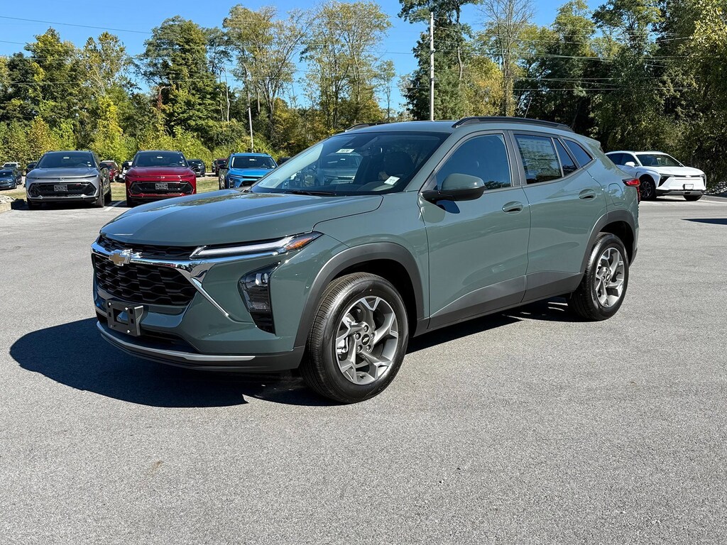 Cypress Gray 2025 Chevrolet Trax LT FWD 6-Speed Automatic 1.2L Ecotec Turbo DOHC DI w/VVT 2-Way Adjustable Front Head Restraints, 3 Years SiriusXM, 3.50 Final Drive Axle Ratio, 4-Way Manual Front Passenger Seat Adjuster, 4-Wheel Disc Brakes, 6 Speakers, 6-Speaker Audio System Feature, 6-Way Manual Driver Seat Adjuster, ABS brakes, Adaptive Cruise Control, Air Conditioning, Alloy wheels, AM/FM radio: SiriusXM, Auto High-beam Headlights, Automatic temperature control, Brake assist, Bumpers: body-color, Cloth/Evotex Seat Trim, Compass, Delay-off headlights, Driver Confidence Package, Driver door bin, Driver vanity mirror, Dual front impact airbags, Dual front side impact airbags, Electronic Stability Control, Emergency communication system: OnStar One Essentials, Exterior Parking Camera Rear, Front anti-roll bar, Front Bucket Seats, Front Center Armrest, Front Doors Keyless Open, Front reading lights, Front wheel independent suspension, Fully automatic headlights, Heated Driver & Front Passenger Seats, Heated Power-Adjustable Outside Mirrors, Heated Steering Wheel, Illuminated entry, Lane Change Alert w/Side Blind Zone Alert, License Plate Front Mounting Package, Low tire pressure warning, LT Convenience Package, Mobile Service Plus, Occupant sensing airbag, Outside temperature display, Overhead airbag, Overhead console, Panic alarm, Passenger door bin, Passenger vanity mirror, Power door mirrors, Power steering, Power windows, Preferred Equipment Group 1LT, Premium audio system: Chevrolet Infotainment 3, Radio data system, Radio: AM/FM Stereo Audio System, Rear Cross-Traffic Alert, Rear Park Assist, Rear window defroster, Rear window wiper, Remote keyless entry, Security system, SiriusXM Trial Subscription, Speed control, Split folding rear seat, Spoiler, Steering wheel mounted audio controls, Tachometer, Telescoping steering wheel, Tilt steering wheel, Traction control, Trip computer, Variably intermittent wipers, Wheels: 17 Gray-Painted Machined Aluminum, Wrapped Steering Wheel.