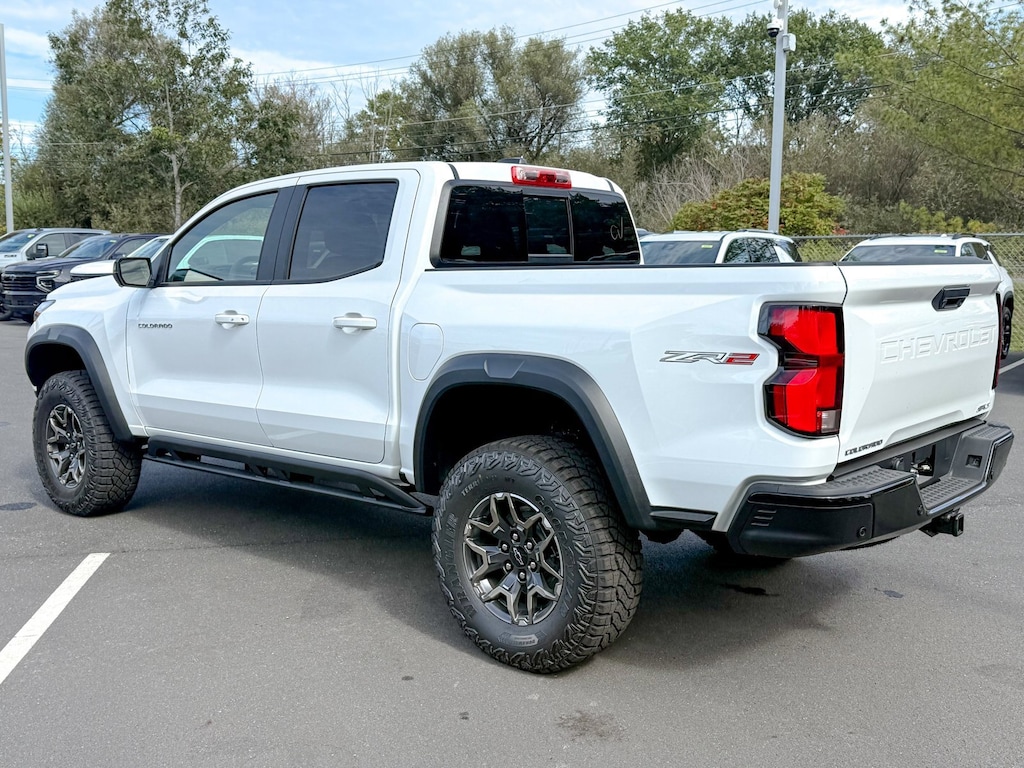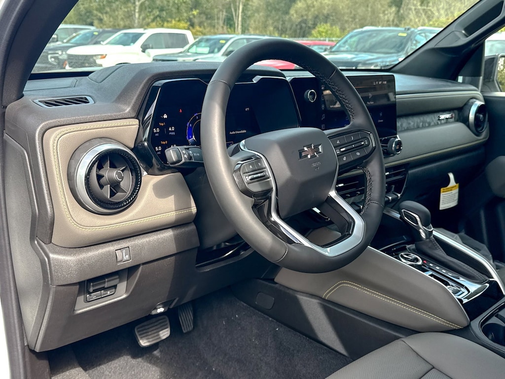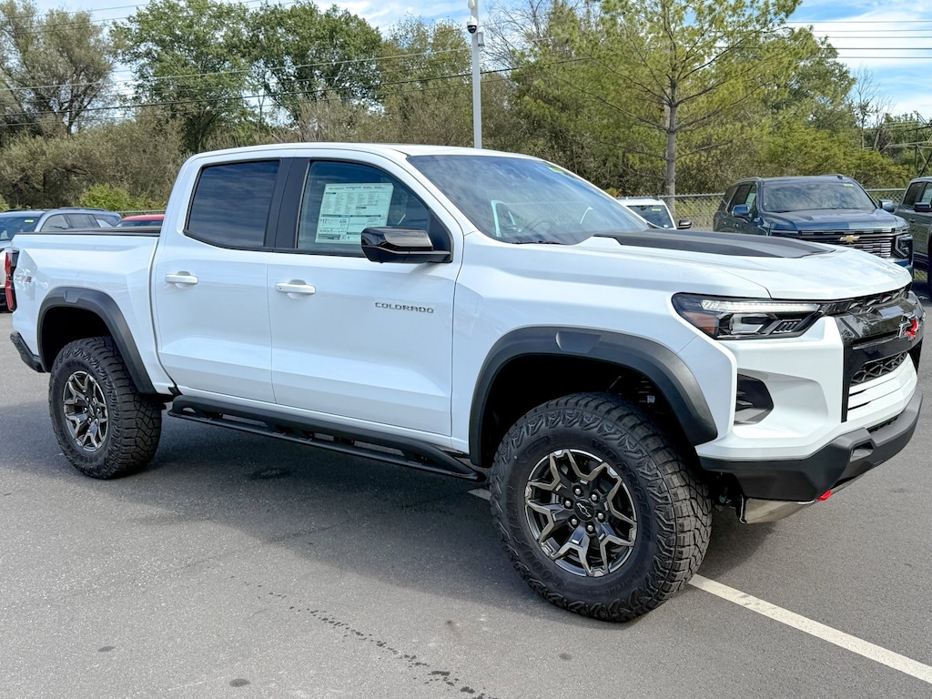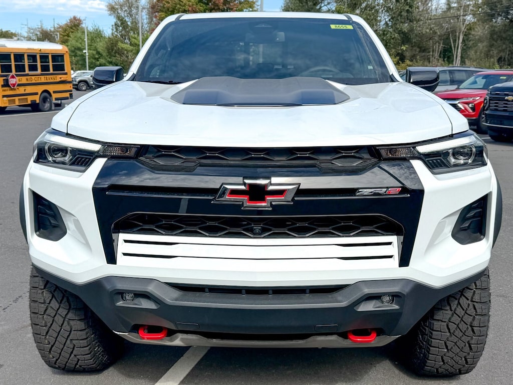Summit White 2026 Chevrolet Colorado ZR2 4WD 8-Speed Automatic 2.7L I4 Turbocharged DOHC 16V LEV3-ULEV50 310hp 3.42 Rear Axle Ratio, 4-Way Manual Passenger Seat Adjuster, 4-Wheel Disc Brakes, 6 Speakers, 6-Speaker Audio System Feature, 8-Way Power Driver Seat Adjuster, ABS brakes, Adaptive Cruise Control, Air Conditioning, All-Weather Floor Mats, Alloy wheels, AM/FM radio: SiriusXM with 360L, Apple CarPlay/Android Auto, Auto High-beam Headlights, Auto-dimming Rear-View mirror, Automatic Emergency Braking, Automatic temperature control, Bose Premium 7-Speaker Audio System Feature, Brake assist, Chevy Safety Assist, Compass, Delay-off headlights, Driver & Front Passenger Heated Seats, Driver & Front Passenger Ventilated Seats, Driver door bin, Driver Memory Settings, Driver Seatback Map Pocket, Driver vanity mirror, Dual front impact airbags, Dual front side impact airbags, Electronic Stability Control, Emergency communication system: OnStar, Following Distance Indicator, Forward Collision Alert, Front anti-roll bar, Front Bucket Seats, Front Center Armrest, Front dual zone A/C, Front fog lights, Front License Plate Kit, Front Passenger Seatback Map Pocket, Front Pedestrian & Bicyclist Braking, Front reading lights, Front wheel independent suspension, HD Surround Vision, Heated door mirrors, Heated front seats, Heated steering wheel, Illuminated entry, IntelliBeam Automatic High Beam On/Off, Lane Keep Assist w/Lane Departure Warning, Low tire pressure warning, Memory seat, Mobile Service Plus, Navigation System, Occupant sensing airbag, Outside temperature display, Overhead airbag, Overhead console, Panic alarm, Passenger door bin, Passenger vanity mirror, Perforated Leather-Appointed Seat Trim, Power door mirrors, Power Driver Lumbar Control Seat Adjuster, Power driver seat, Power Sliding Glass w/Manual Shade Sunroof, Power steering, Power windows, Preferred Equipment Group 4ZR, Radio data system, Radio: 11.3 Diagonal Advanced Color LCD Display, Rear Pedestrian Alert, Rear reading lights, Rear seat center armrest, Rear step bumper, Rear window defroster, Remote keyless entry, Security system, SiriusXM w/360L Trial Subscription, Speed control, Speed-sensing steering, Split folding rear seat, Steering Wheel Mounted Audio Controls, Steering wheel mounted audio controls, Tachometer, Technology Package, Telescoping steering wheel, Tilt steering wheel, Traction control, Trip computer, Variably intermittent wipers, Ventilated front seats, Wheels: 17 x 8 Graphite & Oxide Gold Aluminum, Wireless Phone Projection, ZR2 Off-Road Package.