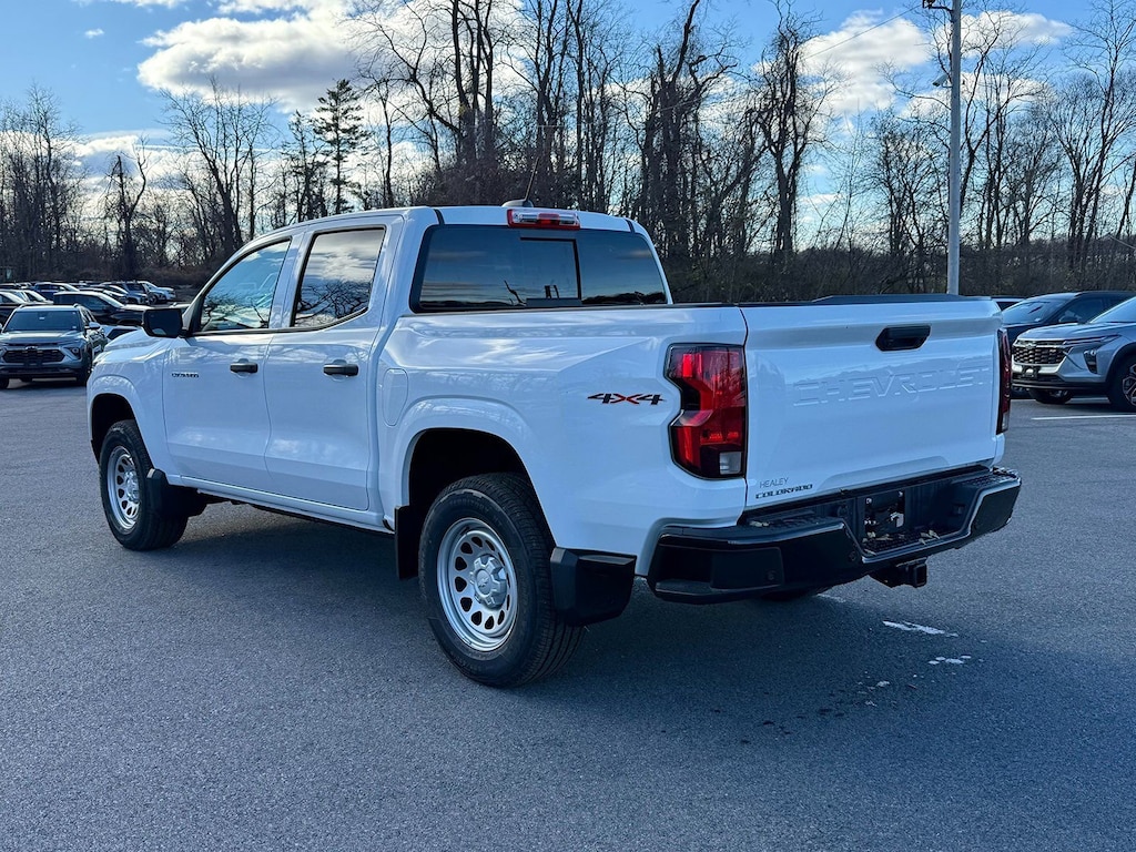 Summit White 2026 Chevrolet Colorado Work Truck 4WD 8-Speed Automatic 2.7L I4 Turbocharged DOHC 16V LEV3-ULEV50 310hp 1st and 2nd Row All-Weather Floor Liner, 220 Amp Alternator, 3 Years SiriusXM, 3.42 Rear Axle Ratio, 4-Spoke Wrapped Steering Wheel, 4-Way Manual Passenger Seat Adjuster, 4-Wheel Disc Brakes, 6 Speakers, 6-Speaker Audio System Feature, 6-Way Manual Driver Seat Adjuster, 8-Way Power Driver Seat Adjuster, ABS brakes, Advanced Trailering Package, Air Conditioning, AM/FM radio: SiriusXM with 360L, Apple CarPlay/Android Auto, Auto High-beam Headlights, Automatic Emergency Braking, Automatic Locking Rear Differential, Bedliner with Integral Storage Compartments, Black Bowtie Emblem, Blind Zone Steering Assist with Trailering, Brake assist, Chevy Safety Assist, Cloth Seat Trim, Delay-off headlights, Driver door bin, Driver vanity mirror, Dual front impact airbags, Dual front side impact airbags, Electronic Stability Control, Emergency communication system: OnStar, EZ-Lift and Lower Tailgate, Following Distance Indicator, Forward Collision Alert, Front and Rear Splash Guards, Front anti-roll bar, Front Bucket Seats, Front Center Armrest, Front License Plate Kit, Front Pedestrian and Bicyclist Braking, Front wheel independent suspension, Heated door mirrors, Heavy-Duty Trailering Package, Integrated Trailer Brake Controller, IntelliBeam Automatic High Beam on/Off, Lane Keep Assist with Lane Departure Warning, Low tire pressure warning, Mobile Service Plus, Navigation System, Occupant sensing airbag, Overhead airbag, Panic alarm, Passenger door bin, Passenger vanity mirror, Power door mirrors, Power Driver Lumbar Control Seat Adjuster, Power steering, Power windows, Preferred Equipment Group 4WT, Radio data system, Radio: 11.3 Diagonal Advanced Color LCD Display, Rear step bumper, Rear window defroster, Remote keyless entry, Security system, SiriusXM with 360L Trial Subscription, Speed control, Speed-sensing steering, Split folding rear seat, Steering Wheel Mounted Audio Controls, Steering wheel mounted audio controls, StowFlex Tailgate Storage Compartment, Tachometer, Tailgate Keyed Cylinder Lock, Tilt steering wheel, Traction control, Trailering App, Trip computer, Variably intermittent wipers, Wheels: 17 x 8 Ultra Silver Metallic Steel, Wireless Phone Projection, WT Convenience Package II.