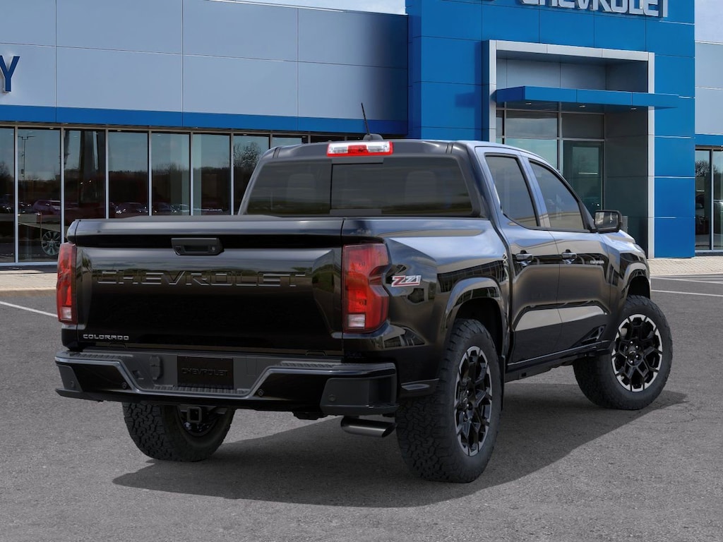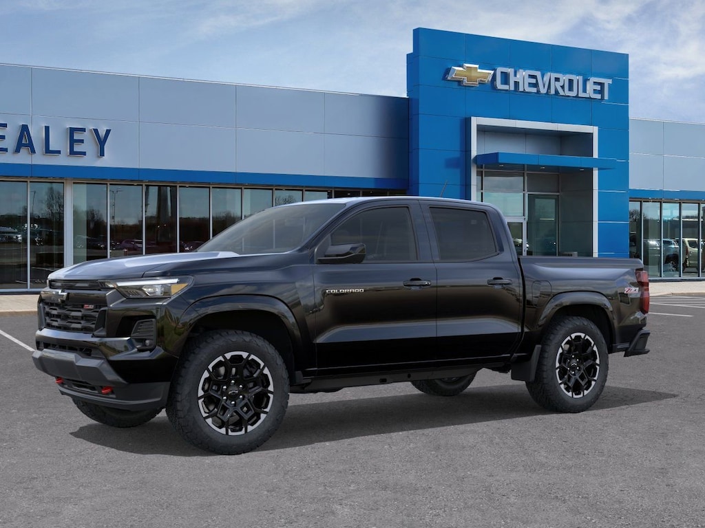 Black 2026 Chevrolet Colorado Z71 4WD 8-Speed Automatic 2.7L I4 Turbocharged DOHC 16V LEV3-ULEV50 310hp 3.42 Rear Axle Ratio, 4-Way Manual Passenger Seat Adjuster, 4-Wheel Disc Brakes, 6 Speakers, 6-Speaker Audio System Feature, 8-Way Power Driver Seat Adjuster, ABS brakes, Adaptive Cruise Control, Air Conditioning, Alloy wheels, AM/FM radio: SiriusXM with 360L, Apple CarPlay/Android Auto, Auto High-beam Headlights, Auto-dimming Rear-View mirror, Automatic Emergency Braking, Automatic temperature control, Black Spray-on Bedliner with Chevrolet Logo, Bose Premium 7-Speaker Audio System Feature, Brake assist, Bumpers: body-color, Chevy Safety Assist, Cloth/Evotex Seat Trim, Compass, Delay-off headlights, Driver and Front Passenger Heated Seats, Driver and Front Passenger Ventilated Seats, Driver door bin, Driver Memory Settings, Driver Seatback Map Pocket, Driver vanity mirror, Dual front impact airbags, Dual front side impact airbags, Electronic Stability Control, Emergency communication system: OnStar, Following Distance Indicator, Forward Collision Alert, Front anti-roll bar, Front Bucket Seats, Front Center Armrest, Front dual zone A/C, Front fog lights, Front License Plate Kit, Front Passenger Seatback Map Pocket, Front Pedestrian and Bicyclist Braking, Front reading lights, Front wheel independent suspension, HD Surround Vision, Heated door mirrors, Heated front seats, Heated Steering Wheel, Illuminated entry, IntelliBeam Automatic High Beam on/Off, Lane Keep Assist with Lane Departure Warning, Low tire pressure warning, Mobile Service Plus, Navigation System, Occupant sensing airbag, Outside temperature display, Overhead airbag, Overhead console, Panic alarm, Passenger door bin, Passenger vanity mirror, Perforated Leather-Appointed Seat Trim, Power door mirrors, Power Driver Lumbar Control Seat Adjuster, Power driver seat, Power steering, Power windows, Preferred Equipment Group 4Z7, Radio data system, Radio: 11.3 Diagonal Advanced Color LCD Display, Rear Center Armrest, Rear Pedestrian Alert, Rear reading lights, Rear step bumper, Rear window defroster, Remote keyless entry, Security system, SiriusXM with 360L Trial Subscription, Speed control, Speed-sensing steering, Split folding rear seat, Steering Wheel Mounted Audio Controls, Steering wheel mounted audio controls, Tachometer, Technology Package, Telescoping steering wheel, Tilt steering wheel, Traction control, Trip computer, Variably intermittent wipers, Wheels: 18 x 8.5 Android Dark Full Gloss Aluminum, Wheels: 20 x 9 Painted Aluminum with Machined Face, Wireless Phone Projection, Z71 Convenience Package III.