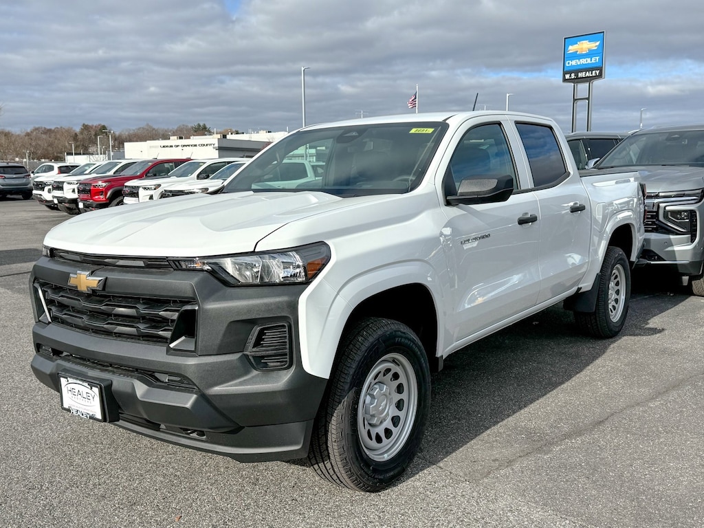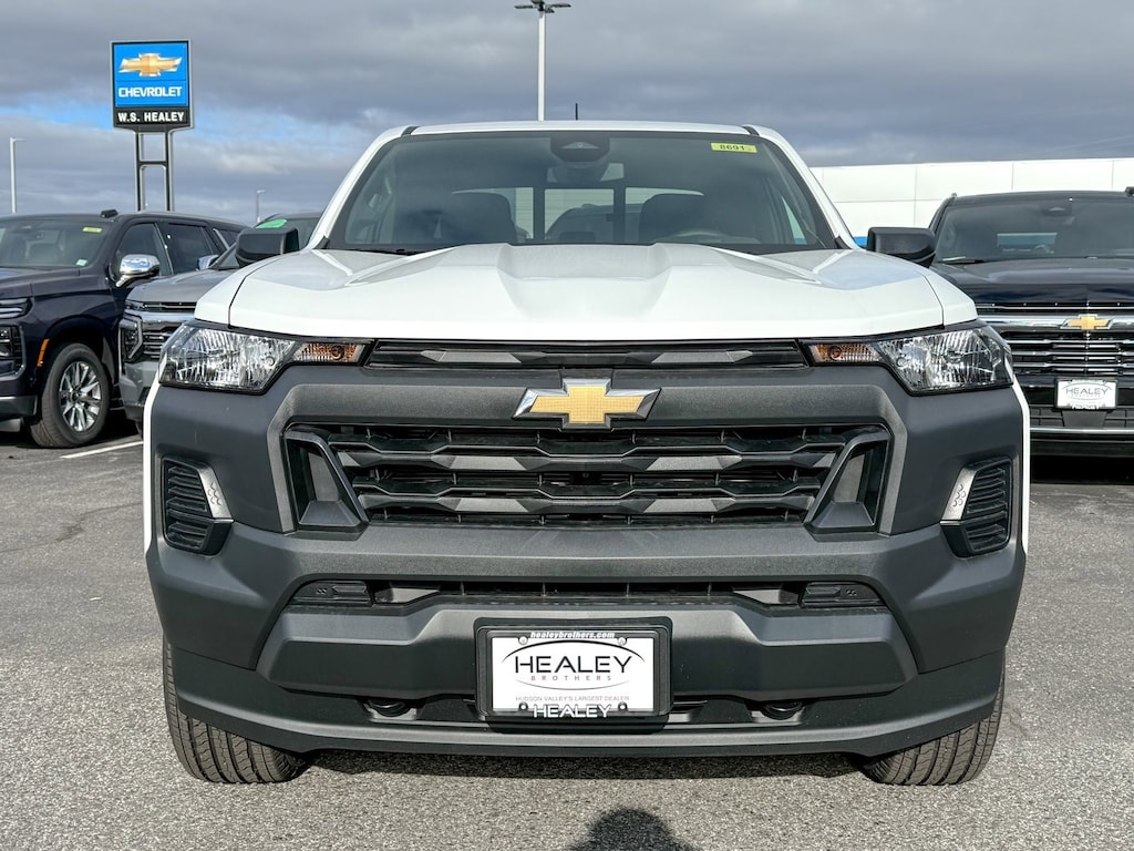 Summit White 2026 Chevrolet Colorado Work Truck 4WD 8-Speed Automatic 2.7L I4 Turbocharged DOHC 16V LEV3-ULEV50 310hp 220 Amp Alternator, 3.42 Rear Axle Ratio, 4-Spoke Wrapped Steering Wheel, 4-Way Manual Passenger Seat Adjuster, 4-Wheel Disc Brakes, 6 Speakers, 6-Speaker Audio System Feature, 6-Way Manual Driver Seat Adjuster, 8-Way Power Driver Seat Adjuster, ABS brakes, Advanced Trailering Package, Air Conditioning, AM/FM radio: SiriusXM with 360L, Apple CarPlay/Android Auto, Auto High-beam Headlights, Automatic Emergency Braking, Automatic Locking Rear Differential, Blind Zone Steering Assist with Trailering, Brake assist, Chevy Safety Assist, Cloth Seat Trim, Delay-off headlights, Driver door bin, Driver vanity mirror, Dual front impact airbags, Dual front side impact airbags, Electronic Stability Control, Emergency communication system: OnStar, EZ-Lift and Lower Tailgate, Following Distance Indicator, Forward Collision Alert, Front anti-roll bar, Front Bucket Seats, Front Center Armrest, Front License Plate Kit, Front Pedestrian and Bicyclist Braking, Front wheel independent suspension, Heated door mirrors, Heavy-Duty Trailering Package, Integrated Trailer Brake Controller, IntelliBeam Automatic High Beam on/Off, Lane Keep Assist with Lane Departure Warning, Low tire pressure warning, Navigation System, Occupant sensing airbag, Overhead airbag, Panic alarm, Passenger door bin, Passenger vanity mirror, Power door mirrors, Power Driver Lumbar Control Seat Adjuster, Power steering, Power windows, Preferred Equipment Group 4WT, Radio data system, Radio: 11.3 Diagonal Advanced Color LCD Display, Rear step bumper, Rear window defroster, Remote keyless entry, Security system, SiriusXM with 360L Trial Subscription, Speed control, Speed-sensing steering, Split folding rear seat, Steering Wheel Mounted Audio Controls, Steering wheel mounted audio controls, StowFlex Tailgate Storage Compartment, Tachometer, Tailgate Keyed Cylinder Lock, Tilt steering wheel, Traction control, Trailering App, Trip computer, Variably intermittent wipers, Wheels: 17 x 8 Ultra Silver Metallic Steel, Wireless Phone Projection, WT Convenience Package II.