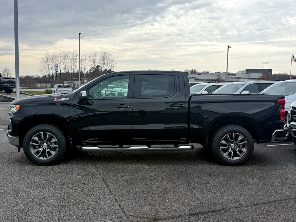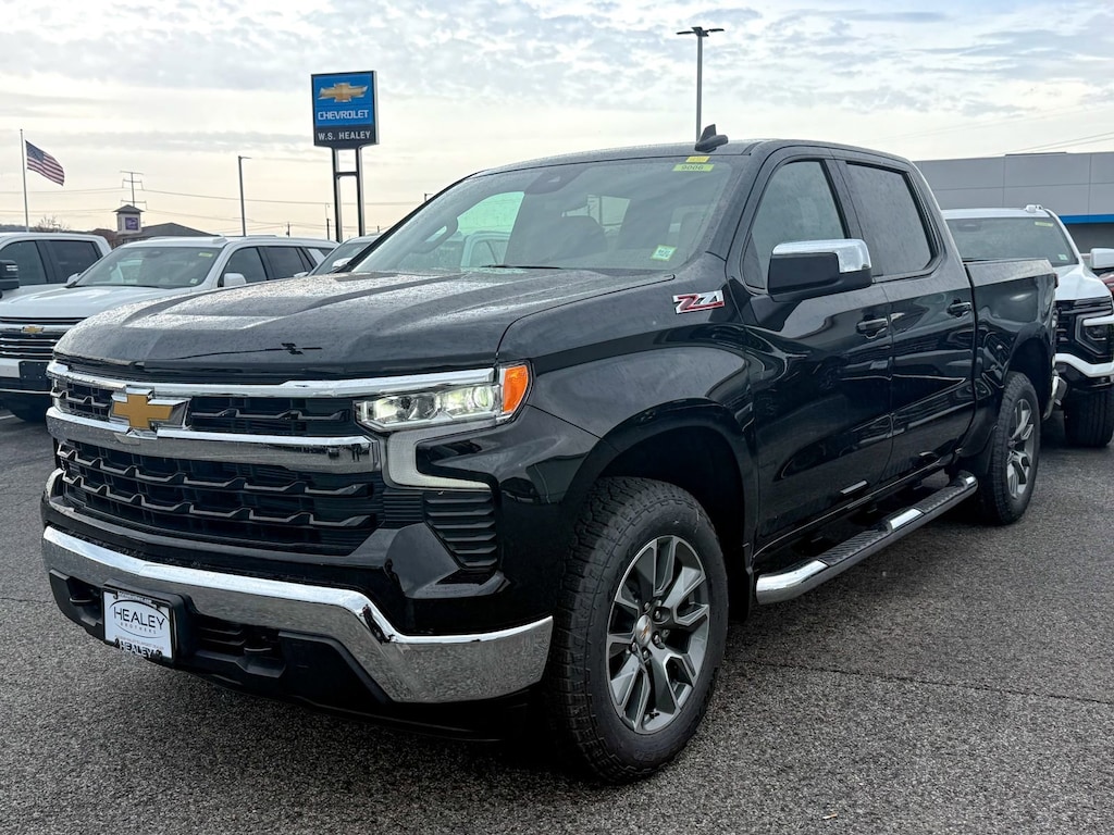 Black 2026 Chevrolet Silverado 1500 LT LT1 4WD 10-Speed Automatic EcoTec3 5.3L V8 10-Way Power Driver Seat with Lumbar, 12.3 Multicolor Reconfigurable Digital Display, 120-Volt Bed Mounted Power Outlet, 120-Volt Interior Power Outlet, 170 Amp Alternator, 2 USB Data Ports, 220 Amp Alternator, 3.23 Rear Axle Ratio, 4-Wheel Disc Brakes, 4 Chromed Round Assist Steps, 40/20/40 Front Split-Bench Seat, 6 Speakers, 6-Speaker Audio System, ABS brakes, Air Conditioning, All-Star Edition, All-Weather Floor Liner, Alloy wheels, AM/FM radio: SiriusXM with 360L, Apple CarPlay/Android Auto, Auto High-beam Headlights, Auto-Locking Rear Differential, Automatic Emergency Braking, Automatic temperature control, Auxiliary External Transmission Oil Cooler, Bluetooth® For Phone, Brake assist, Bumpers: chrome, Chevytec Spray-on Black Bedliner, Chrome Mirror Caps, Cloth Seat Trim, Color-Keyed Carpeting Floor Covering, Compass, Convenience Package, Deep-Tinted Glass, Delay-off headlights, Driver door bin, Driver vanity mirror, Dual Exhaust with Polished Outlets, Dual front impact airbags, Dual front side impact airbags, Dual Rear USB Ports (charge Only), Dual-Zone Automatic Climate Control, Electric Rear-Window Defogger, Electronic Cruise Control, Electronic Stability Control, Electronic Transmission Range Selector Shifter, Emergency communication system: OnStar, External Engine Oil Cooler, EZ Lift Power Lock and Release Tailgate, Floor Mounted Center Console, Following Distance Indicator, Forward Collision Alert, Front anti-roll bar, Front Bucket Seats, Front Center Armrest w/Storage, Front dual zone A/C, Front Frame-Mounted Black Recovery Hooks, Front License Plate Kit, Front Pedestrian Braking, Front reading lights, Front Rubberized Vinyl Floor Mats, Front wheel independent suspension, Fully automatic headlights, HD Rear Vision Camera, Heated door mirrors, Heated Driver and Front Outboard Passenger Seats, Heated front seats, Heated Power-Adjustable Outside Mirrors, Heated Steering Wheel, Heated steering wheel, Heavy-Duty Air Filter, Hill Descent Control, Hitch Guidance, Illuminated entry, Inside Rearview Mirror with Tilt, Integrated Trailer Brake Controller, IntelliBeam Automatic High Beam on/Off, Keyless Open and Start, Lane Keep Assist with Lane Departure Warning, LED Cargo Area Lighting, Low tire pressure warning, Manual Tilt/Telescoping Steering Column, Mobile Service Plus, Occupant sensing airbag, Off-Road Suspension, OnStar Services Capable, Outside temperature display, Overhead airbag, Overhead console, Panic alarm, Passenger door bin, Passenger vanity mirror, Power door mirrors, Power driver seat, Power Front Windows with Driver Express Up/Down, Power Front Windows with Passenger Express Down, Power Rear Windows with Express Down, Power steering, Power windows, Preferred Equipment Group 1LT, Premium audio system: Chevrolet Infotainment 3 Premium, Protection Package, Radio data system, Radio: Chevrolet Infotainment 3 Premium System, Rear 60/40 Folding Bench Seat (folds Up), Rear reading lights, Rear Rubberized-Vinyl Floor Mats, Rear step bumper, Rear Wheelhouse Liners, Rear window defroster, Remote keyless entry, Remote Start Package, Remote Vehicle Starter System, Security system, SiriusXM with 360L Trial Subscription, Speed control, Speed-sensing steering, Split folding rear seat, Standard Suspension Package, Standard Tailgate, Steering Wheel Audio Controls, Steering wheel mounted audio controls, Tachometer, Teen Driver, Telescoping steering wheel, Theft Deterrent System (unauthorized Entry), Tilt steering wheel, Tire Pressure Monitoring System, Traction control, Trailering Package, Trip computer, Variably intermittent wipers, Voltmeter, Wheels: 17 x 8 Bright Silver Painted Aluminum, Wheels: 18 x 8.5 Bright Silver Painted Aluminum, Wheels: 20 x 9 Painted Aluminum, Wi-Fi Hot Spot Capable, Wireless Charging, Wrapped Steering Wheel, Z71 Off-Road and Protection Package, Z71 Off-Road Package.