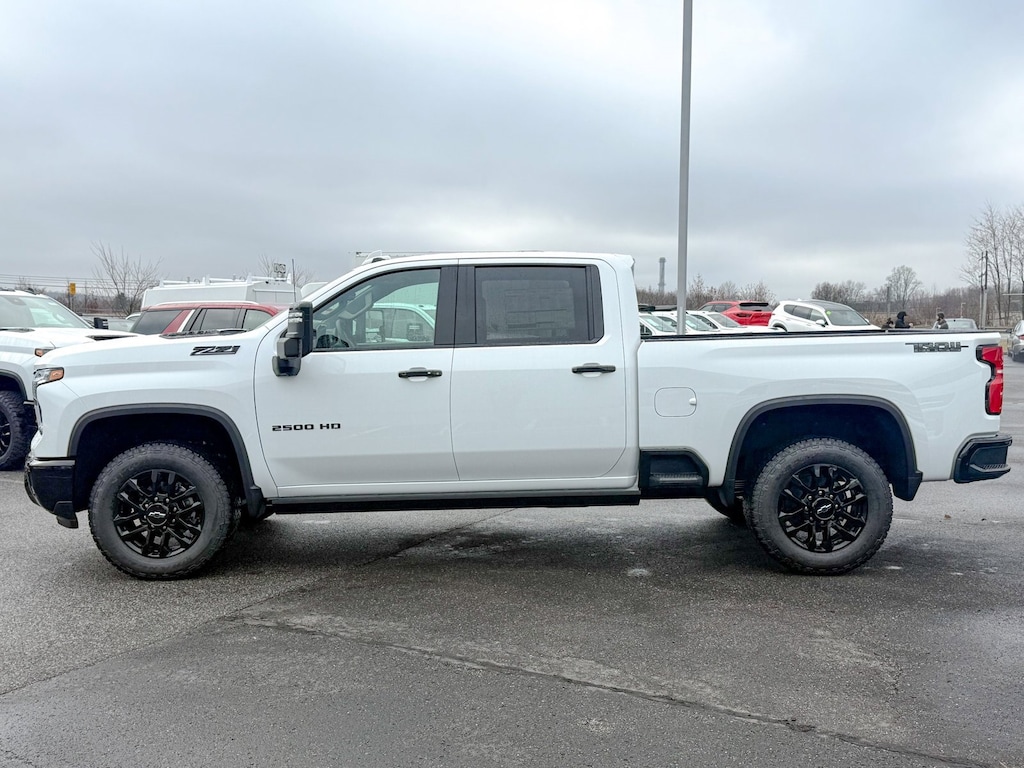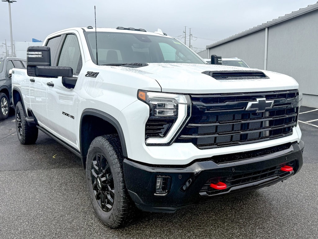 Summit White 2026 Chevrolet Silverado 2500HD LTZ 4WD 10-Speed Automatic 6.6L V8 10-Way Power Driver Seat Adjuster w/Lumbar, 10-Way Power Passenger Seat Adjuster w/Lumbar, 120-Volt Bed Mounted Power Outlet, 120-Volt Interior Power Outlet, 15 Diagonal Multicolor Head-Up Display, 170 Amp Alternator, 3.73 Rear Axle Ratio, 4-Wheel Disc Brakes, 6 Speakers, 6-Speaker Audio System, 720 Cold-Cranking Amps Heavy-Duty Battery, ABS brakes, Adaptive Cruise Control, Air Conditioning, Alloy wheels, AM/FM radio: SiriusXM with 360L, Apple CarPlay/Android Auto, Auto High-beam Headlights, Auto-dimming door mirrors, Auto-Dimming Inside Rear-View Mirror, Auto-dimming Rear-View mirror, Automatic temperature control, Bluetooth® For Phone, Brake assist, Bumpers: chrome, Chevrolet Connected Access Capable, Chrome Door Handles, Chrome Mirror Caps, Color-Keyed Carpeting Floor Covering, Compass, Deep-Tinted Glass, Delay-off headlights, Driver door bin, Driver Memory, Driver vanity mirror, Dual front impact airbags, Dual front side impact airbags, Durabed Pickup Bed, Electric Rear-Window Defogger, Electronic Cruise Control w/Set & Resume Speed, Electronic Stability Control, Emergency communication system: OnStar, EZ Lift Power Lock & Release Tailgate, Front 40/20/40 Split-Bench Seats w/Lockable Storage, Front anti-roll bar, Front Center Armrest w/Storage, Front dual zone A/C, Front fog lights, Front LED Fog Lamps, Front Rain-Sensing Wipers, Front reading lights, Front Rubberized Vinyl Floor Mats, Front wheel independent suspension, Fully automatic headlights, Gooseneck/5th Wheel Prep Package, HD Rear Vision Camera, Heated door mirrors, Heated Driver & Front Outboard Passenger Seating, Heated front seats, Heated Steering Wheel, Heated steering wheel, Hitch Guidance w/Hitch View, Illuminated entry, In-Vehicle Trailering App System, Keyless Open & Start, LED Cargo Area Lighting, LED Smoked Amber Roof Marker Lamps, Low tire pressure warning, LTZ Convenience Package, LTZ Convenience Package II, Manual Tilt & Telescoping Steering Column, Memory seat, Mobile Service Plus, Occupant sensing airbag, Off-Road Suspension, OnStar Services Capable, Outside temperature display, Overhead airbag, Overhead console, Panic alarm, Passenger door bin, Passenger vanity mirror, Perf Leather-Appointed Front Outboard Seat Trim, Power Door Locks, Power door mirrors, Power driver seat, Power Front Windows w/Driver Express Up/Down, Power Front Windows w/Passenger Express Up/Down, Power passenger seat, Power Rear Windows w/Express Down, Power steering, Power Sunroof, Power windows, Power-Retractable Black Assist Steps, Premium audio system: Chevrolet Infotainment 3 Premium, Push Button Start, Radio: Chevrolet Infotainment 3 Premium System, Rain sensing wipers, Rear Camera Mirror, Rear reading lights, Rear Rubberized Vinyl Floor Mats, Rear seat center armrest, Rear step bumper, Rear Wheelhouse Liners, Rear window defroster, Remote keyless entry, Remote Vehicle Starter System, Safety Package, Security system, SiriusXM w/360L Trial Subscription, Snow Plow Prep/Camper Package, Speed control, Speed-sensing steering, Split folding rear seat, Standard Tailgate, Steering Wheel Audio Controls, Steering wheel mounted audio controls, Suspension Package, Tachometer, Technology Package, Telescoping steering wheel, Tilt steering wheel, Traction control, Trail Boss Package, Trip computer, Turn signal indicator mirrors, Unauthorized Entry Theft-Deterrent System, Up-Level Rear Seat w/Storage Package, Variably intermittent wipers, Voltmeter, Wheels: 18 Machined Alum w/Silver Painted Accents, Wheels: 20 High Gloss Black Painted, Wi-Fi Hotspot Capable, Wireless Phone Projection, Wrapped Steering Wheel, Z71 Off-Road Package.