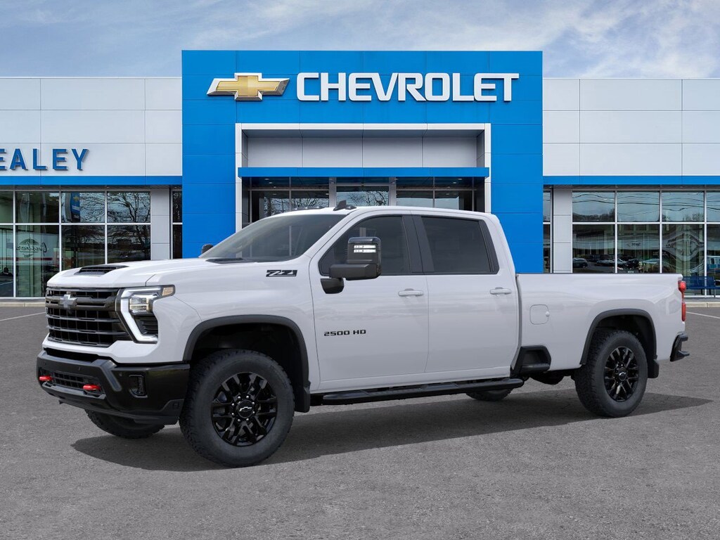 White 2026 Chevrolet Silverado 2500HD LT 4WD 10-Speed Automatic Duramax 6.6L V8 Turbodiesel 10-Way Power Driver Seat Adjuster w/Lumbar, 120-Volt Bed Mounted Power Outlet, 120-Volt Interior Power Outlet, 17 Machined Aluminum Wheels, 170 Amp Alternator, 1st & 2nd Row All-Weather Floor Liners (LPO) (AAK), 2 Charge/Data USB Ports Inside Center Console, 2-Speed Electronic Shift Transfer Case, 220 Amp Alternator, 3 Years SiriusXM, 4-Way Manual Driver Seat Adjuster, 4-Wheel Disc Brakes, 4 Round Black Assist Steps (LPO), 6 Speakers, 6-Speaker Audio System, 720 Cold-Cranking Amps Heavy-Duty Battery, ABS brakes, Air Conditioning, Alloy wheels, AM/FM radio: SiriusXM with 360L, Animated LED Projector Headlamps, Apple CarPlay/Android Auto, Auto High-beam Headlights, Auto-Dimming Inside Rear-View Mirror, Bed View Camera w/2 Trailer Camera Provisions, Black Chevytec Spray-On Bedliner, Black Grille Bar w/Chevy Black Bow Tie, Black Mirror Caps, Black Molded Splash Guards (LPO), Bluetooth® For Phone, Brake assist, Bumpers: chrome, Chevrolet Connected Access Capable, Cloth Rear Seat w/Storage Package, Cloth Seat Trim, Color-Keyed Carpeting Floor Covering, Compass, Convenience Package, Convenience Package II, Deep-Tinted Glass, Delay-off headlights, Driver door bin, Driver vanity mirror, Dual front impact airbags, Dual front side impact airbags, Dual-Zone Automatic Climate Control, Durabed Pickup Bed, Electric Rear-Window Defogger, Electronic Cruise Control w/Set & Resume Speed, Electronic Stability Control, Emergency communication system: OnStar, EZ Lift Power Lock & Release Tailgate, Floor-Mounted Center Console, Front 40/20/40 Split-Bench Seats w/Lockable Storage, Front anti-roll bar, Front Bucket Seats, Front Center Armrest w/Storage, Front Frame-Mounted Red Recovery Hooks, Front LED Fog Lamps, Front reading lights, Front Rubberized Vinyl Floor Mats, Front wheel independent suspension, Fully automatic headlights, Halogen Reflector Headlamps, HD Rear Vision Camera, HD Surround Vision, Heat Package, Heated & Auto-Dimming Vertical Trailering Mirrors, Heated door mirrors, Heated Driver & Front Outboard Passenger Seating, Heated Steering Wheel, Heated Vertical Trailering Mirrors, High Gloss Black Door Handles, High Gloss Black Front Bumper, High Gloss Black Mirror Caps, High Gloss Black Rear Bumper, Hill Descent Control, Hitch Guidance w/Hitch View, Illuminated entry, In-Vehicle Trailering App System, Keyless Open & Start, Leather Package, LED Cargo Area Lighting, LED Smoked Amber Roof Marker Lamps, Low tire pressure warning, Manual Tilt & Telescoping Steering Column, Mobile Service Plus, Occupant sensing airbag, Off-Road Suspension, OnStar Services Capable, Outside temperature display, Overhead airbag, Overhead console, Panic alarm, Passenger door bin, Passenger vanity mirror, Power Door Locks, Power door mirrors, Power Front Windows w/Driver Express Up/Down, Power Front Windows w/Passenger Express Down, Power Rear Windows w/Express Down, Power Sliding Rear Window w/Defogger, Power steering, Power windows, Premium audio system: Chevrolet Infotainment 3 Premium, Push Button Start, Pwr Up/Down Tailgate Function w/Pwr Lock & Release, Radio: Chevrolet Infotainment 3 Premium System, Rear 60/40 Folding Bench Seat (Folds Up), Rear Camera Mirror, Rear Cross Traffic Alert, Rear reading lights, Rear Rubberized Vinyl Floor Mats, Rear step bumper, Rear Wheelhouse Liners, Remote keyless entry, Remote Start Package, Remote Vehicle Starter System, Safety Package, SiriusXM w/360L Trial Subscription, Snow Plow Prep/Camper Package, Speed control, Split folding rear seat, Standard Tailgate, Steering Wheel Audio Controls, Steering wheel mounted audio controls, Suspension Package, Tachometer, Tilt steering wheel, Traction control, Trail Boss Package, Trailer Camera Provisions, Trailer Side Blind Zone Alert, Trip computer, Turn signal indicator mirrors, Ultrasonic Front & Rear Park Assist, Unauthorized Entry Theft-Dete