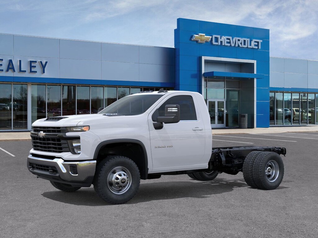 Summit White 2026 Chevrolet Silverado 3500HD Work Truck 4WD 10-Speed Automatic 6.6L V8 120-Volt (400 Watts) Interior Power Outlet, 17 Painted Steel Wheels, 170 Amp Alternator, 2 Speakers, 2-Speaker Audio System Feature, 2-Speed Electronic Shift Transfer Case, 220 Amp Alternator, 3.5 Diagonal Monochromatic Display DIC, 3.73 Rear Axle Ratio, 4-Way Manual Driver Seat Adjuster, 4-Way Manual Passenger Seat Adjuster, 4-Wheel Disc Brakes, 700 Cold-Cranking Amps/70 Amp-Hr Auxiliary Battery, ABS brakes, Air Conditioning, AM/FM radio, Auto High-beam Headlights, Auto-Dimming Inside Rear-View Mirror, Black Front Bumper, Black Mirror Caps, Bluetooth® For Phone, Brake assist, Compass, Compass Located in Instrument Cluster, Deep-Tinted Glass, Delay-off headlights, Driver door bin, Dual front impact airbags, Dual front side impact airbags, Dual rear wheels, Electric Rear-Window Defogger, Electronic Stability Control, Emergency communication system, Front 40/20/40 Split-Bench Seat, Front anti-roll bar, Front Center Armrest w/Storage, Front Chrome Bumper, Front Grille Bar with Black Mesh Inserts, Front License Plate Kit, Front reading lights, Front wheel independent suspension, Fully automatic headlights, Heavy-Duty 80 Amp-Hour Battery, Illuminated entry, Low tire pressure warning, Manual Tilt Inside Rearview Mirror, Manual Tilt-Wheel Steering Column, Occupant sensing airbag, OnStar Services Capable, Outside temperature display, Overhead airbag, Overhead console, Panic alarm, Passenger door bin, Passenger vanity mirror, Perimeter Lighting, Power steering, Power windows, Power-Adjustable Outside Mirrors, Preferred Equipment Group 1WT, Premium audio system: Chevrolet Infotainment System 3, Radio: Chevrolet Infotainment 3 System, Remote keyless entry, Rubberized-Vinyl Floor Covering, SiriusXM Trial Subscription, Snow Plow Prep Package, Solar Absorbing Tinted Glass, Speed control, Steering Wheel Mounted Electronic Cruise Control, Suspension Package, Tachometer, Tilt steering wheel, Traction control, Trip computer, Upfitter Switch Kit (5), Variably intermittent wipers, Vinyl Seat Trim, Voltmeter, WT Convenience Package.