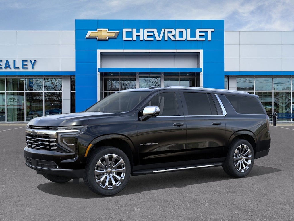 Black 2026 Chevrolet Suburban Premier 4WD 10-Speed Automatic with Overdrive EcoTec3 5.3L V8 10 Speakers, 1st & 2nd Rows Premium Floor Liners (LPO), 2-Speed Active Electronic AutoTrac Transfer Case, 20 x 9 Polished Aluminum Wheels, 3 Years SiriusXM, 3.23 Rear Axle Ratio, 3rd Row 60/40 Power-Folding Split-Bench, 3rd Row All-Weather Floor Liners (LPO), 3rd row seats: split-bench, 4-Way Power Driver Lumbar Seat Adjuster, 4-Way Power Front Passenger Lumbar Seat Adjuster, 4-Wheel Disc Brakes, 8-Way Power Driver Seat Adjuster, 8-Way Power Front Passenger Seat Adjuster, ABS brakes, Adaptive suspension, Advanced Trailering Package, Air Conditioning, All-Weather Cargo Mat (LPO), Alloy wheels, AM/FM radio: SiriusXM with 360L, Apple CarPlay/Android Auto, Auto High-beam Headlights, Auto-dimming door mirrors, Auto-Dimming Inside Rear-View Mirror, Auto-dimming Rear-View mirror, Auto-leveling suspension, Automatic temperature control, Blind Zone Steering Assist w/Trailering, Bose 10-Speaker Surround w/CenterPoint, Brake assist, Bright Front & Rear Door Sill Plates, Bumpers: body-color, Chrome Door Handles w/Body-Color Strip, Chrome Mirror Caps, Compass, Delay-off headlights, Driver door bin, Driver vanity mirror, Dual Exhaust System, Dual front impact airbags, Dual front side impact airbags, Dual-Pane Power Panoramic Sunroof, Electronic Stability Control, Emergency communication system: OnStar Services capable, Exterior Parking Camera Rear, Extra Capacity Cooling System, Four wheel independent suspension, Front & Rear Black Bowtie Emblems (LPO), Front anti-roll bar, Front Bucket Seats, Front Center Armrest, Front dual zone A/C, Front fog lights, Front LED Fog Lamps, Front reading lights, Fully automatic headlights, Garage door transmitter, Heated 2nd Row Outboard Seats, Heated door mirrors, Heated Driver & Front Passenger Seats, Heated front seats, Heated Power-Adjustable Outside Mirrors, Heated rear seats, Heated Steering Wheel, Heated steering wheel, Hill Descent Control, Hitch View w/Pan/Zoom Image Adjustment, Illuminated entry, Integrated Trailer Brake Controller, Interior Camera, LED Headlamps w/LED Daytime Running Lamps, LED Tail Lamps, License Plate Front Mounting Package, Low tire pressure warning, Magnetic Ride Control Suspension, Max Trailering Package, Memory seat, Memory Settings, Mobile Service Plus, Navigation system: Google built-in compatibility (select service plan required, terms and limitations apply), Occupant sensing airbag, Outside temperature display, Overhead airbag, Overhead console, Panic alarm, Passenger door bin, Passenger vanity mirror, Perforated Heated & Ventilated Seats, Perforated Leather Seating Surfaces, Power door mirrors, Power driver seat, Power Liftgate, Power passenger seat, Power Release 2nd Row Bucket Seats, Power steering, Power Tilt & Telescopic Steering Column, Power windows, Power-Sliding Center Floor Console, Preferred Equipment Group 1LZ, Premium Liner Protection Package (LPO), Radio data system, Radio: 17.7 Diagonal Advanced Color LCD Display, Rain sensing wipers, Rear air conditioning, Rear anti-roll bar, Rear Power Liftgate, Rear reading lights, Rear window defroster, Rear window wiper, Remote keyless entry, Security system, SiriusXM w/360L Trial Subscription, Smart Trailer Integration Indicator, Speed control, Speed-sensing steering, Split folding rear seat, Spoiler, Steering wheel memory, Steering wheel mounted audio controls, Sun & Tow Package, Tachometer, Telescoping steering wheel, Tilt steering wheel, Traction control, Trip computer, Turn signal indicator mirrors, Universal Home Remote, Variably intermittent wipers, Ventilated front seats, Voltmeter, Wheel Locks (Set of 4) (LPO), Wheels: 22 x 9 Manoogian Silver Painted Alum, Wireless Apple CarPlay/Wireless Android Auto, Wireless Phone Charging.