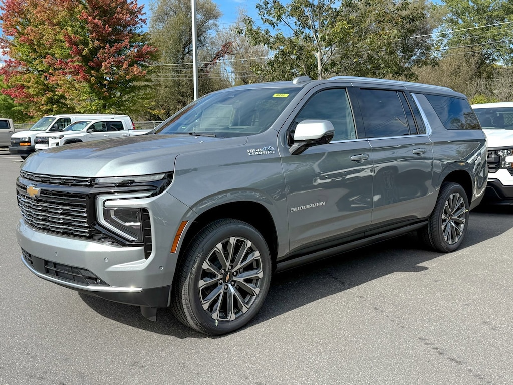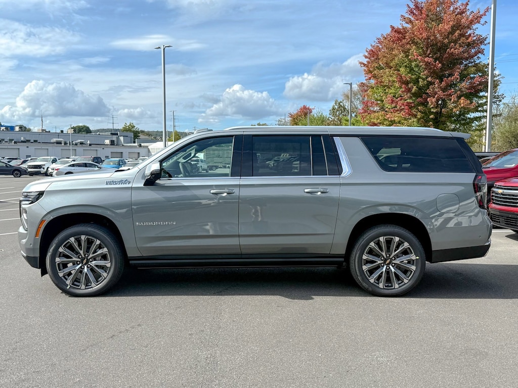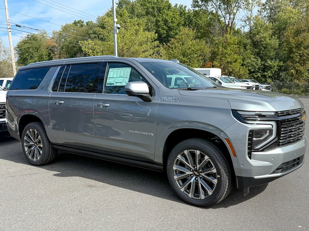 Sterling Gray Metallic 2026 Chevrolet Suburban High Country 4WD 10-Speed Automatic with Overdrive EcoTec3 6.2L V8 10 Speakers, 15 Diagonal Multi-Color Head-Up Display, 2-Speed Active Electronic AutoTrac Transfer Case, 3 Years OnStar One (R9M), 3.23 Rear Axle Ratio, 3rd Row 60/40 Power-Folding Split-Bench, 3rd row seats: split-bench, 4-Way Power Driver Lumbar Seat Adjuster, 4-Way Power Front Passenger Lumbar Seat Adjuster, 4-Wheel Disc Brakes, 8-Way Power Driver Seat Adjuster, 8-Way Power Front Passenger Seat Adjuster, ABS brakes, Adaptive suspension, Advanced Trailering Package, Air Conditioning, Air Ride Adaptive Suspension, Alloy wheels, AM/FM radio: SiriusXM with 360L, Apple CarPlay/Android Auto, Auto High-beam Headlights, Auto-dimming door mirrors, Auto-dimming Rear-View mirror, Auto-leveling suspension, Automatic temperature control, Blind Zone Steering Assist w/Trailering, Bose 10-Speaker Surround w/CenterPoint, Brake assist, Bright Front & Rear Door Sill Plates, Bumpers: body-color, Chrome Door Handles w/Body-Color Strip, Compass, Delay-off headlights, Driver door bin, Driver vanity mirror, Dual Exhaust System, Dual front impact airbags, Dual front side impact airbags, Dual-Pane Power Panoramic Sunroof, Electronic Stability Control, Emergency communication system: OnStar Services capable, Exterior Parking Camera Rear, Extra Capacity Cooling System, Four wheel independent suspension, Front anti-roll bar, Front Bucket Seats, Front Center Armrest, Front dual zone A/C, Front fog lights, Front LED Fog Lamps, Front reading lights, Fully automatic headlights, Garage door transmitter, Heads-Up Display, Heated 2nd Row Outboard Seats, Heated door mirrors, Heated Driver & Front Passenger Seats, Heated front seats, Heated Power-Adjustable Outside Mirrors, Heated rear seats, Heated Steering Wheel, Heated steering wheel, High Country Deluxe, Hill Descent Control, Hitch View w/Pan/Zoom Image Adjustment, Illuminated entry, Inside Rearview Auto-Dimming Rear Camera Mirror, Integrated Trailer Brake Controller, Interior Camera, LED Headlamps w/LED Daytime Running Lamps, LED Tail Lamps, License Plate Front Mounting Package, Low tire pressure warning, Magnetic Ride Control Suspension, Max Trailering Package, Memory seat, Memory Settings, Mobile Service Plus, Navigation system: Google built-in compatibility (select service plan required, terms and limitations apply), Occupant sensing airbag, Outside temperature display, Overhead airbag, Overhead console, Panic alarm, Passenger door bin, Passenger vanity mirror, Perforated Heated & Ventilated Seats, Perforated Leather Seating Surfaces, Power door mirrors, Power driver seat, Power Liftgate, Power passenger seat, Power Release 2nd Row Bucket Seats, Power steering, Power Tilt & Telescopic Steering Column, Power windows, Power-Retractable Assist Steps, Power-Sliding Center Floor Console, Preferred Equipment Group 3LZ, Radio data system, Radio: 17.7 Diagonal Advanced Color LCD Display, Rain sensing wipers, Rear air conditioning, Rear anti-roll bar, Rear Power Liftgate, Rear reading lights, Rear window defroster, Rear window wiper, Remote keyless entry, Security system, SiriusXM w/360L Trial Subscription, Smart Trailer Integration Indicator, Speed control, Speed-sensing steering, Split folding rear seat, Spoiler, Steering wheel memory, Steering wheel mounted audio controls, Super Cruise, Tachometer, Telescoping steering wheel, Tilt steering wheel, Traction control, Trip computer, Turn signal indicator mirrors, Universal Home Remote, Variably intermittent wipers, Ventilated front seats, Voltmeter, Wheel Locks (Set of 4) (LPO), Wheels: 22 x 9 Bright Machined Alum., Wireless Apple CarPlay/Wireless Android Auto, Wireless Phone Charging.