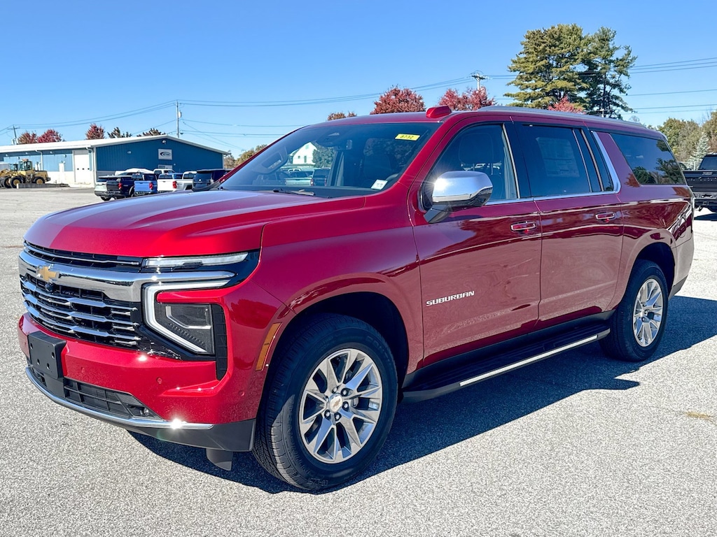 Radiant Red Tintcoat 2026 Chevrolet Suburban Premier 4WD 10-Speed Automatic with Overdrive EcoTec3 5.3L V8 10 Speakers, 2-Speed Active Electronic AutoTrac Transfer Case, 20 x 9 Polished Aluminum Wheels, 3.23 Rear Axle Ratio, 3rd Row 60/40 Power-Folding Split-Bench, 3rd row seats: split-bench, 4-Way Power Driver Lumbar Seat Adjuster, 4-Way Power Front Passenger Lumbar Seat Adjuster, 4-Wheel Disc Brakes, 8-Way Power Driver Seat Adjuster, 8-Way Power Front Passenger Seat Adjuster, ABS brakes, Adaptive suspension, Advanced Trailering Package, Air Conditioning, Alloy wheels, AM/FM radio: SiriusXM with 360L, Apple CarPlay/Android Auto, Auto High-beam Headlights, Auto-dimming door mirrors, Auto-Dimming Inside Rear-View Mirror, Auto-dimming Rear-View mirror, Auto-leveling suspension, Automatic temperature control, Blind Zone Steering Assist w/Trailering, Bose 10-Speaker Surround w/CenterPoint, Brake assist, Bright Front & Rear Door Sill Plates, Bumpers: body-color, Chrome Door Handles w/Body-Color Strip, Chrome Mirror Caps, Compass, Delay-off headlights, Driver door bin, Driver vanity mirror, Dual Exhaust System, Dual front impact airbags, Dual front side impact airbags, Dual-Pane Power Panoramic Sunroof, Electronic Stability Control, Emergency communication system: OnStar Services capable, Exterior Parking Camera Rear, Extra Capacity Cooling System, Four wheel independent suspension, Front anti-roll bar, Front Bucket Seats, Front Center Armrest, Front dual zone A/C, Front fog lights, Front LED Fog Lamps, Front reading lights, Fully automatic headlights, Garage door transmitter, Heated 2nd Row Outboard Seats, Heated door mirrors, Heated Driver & Front Passenger Seats, Heated front seats, Heated Power-Adjustable Outside Mirrors, Heated rear seats, Heated Steering Wheel, Heated steering wheel, Hill Descent Control, Hitch View w/Pan/Zoom Image Adjustment, Illuminated entry, Integrated Trailer Brake Controller, Interior Camera, LED Headlamps w/LED Daytime Running Lamps, LED Tail Lamps, License Plate Front Mounting Package, Low tire pressure warning, Magnetic Ride Control Suspension, Max Trailering Package, Memory seat, Memory Settings, Mobile Service Plus, Navigation system: Google built-in compatibility (select service plan required, terms and limitations apply), Occupant sensing airbag, Outside temperature display, Overhead airbag, Overhead console, Panic alarm, Passenger door bin, Passenger vanity mirror, Perforated Heated & Ventilated Seats, Perforated Leather Seating Surfaces, Power door mirrors, Power driver seat, Power Liftgate, Power passenger seat, Power Release 2nd Row Bucket Seats, Power steering, Power Tilt & Telescopic Steering Column, Power windows, Power-Sliding Center Floor Console, Preferred Equipment Group 1LZ, Radio data system, Radio: 17.7 Diagonal Advanced Color LCD Display, Rain sensing wipers, Rear air conditioning, Rear anti-roll bar, Rear Power Liftgate, Rear reading lights, Rear window defroster, Rear window wiper, Remote keyless entry, Security system, SiriusXM w/360L Trial Subscription, Smart Trailer Integration Indicator, Speed control, Speed-sensing steering, Split folding rear seat, Spoiler, Steering wheel memory, Steering wheel mounted audio controls, Sun & Tow Package, Tachometer, Telescoping steering wheel, Tilt steering wheel, Traction control, Trip computer, Turn signal indicator mirrors, Universal Home Remote, Variably intermittent wipers, Ventilated front seats, Voltmeter, Wireless Apple CarPlay/Wireless Android Auto, Wireless Phone Charging.
