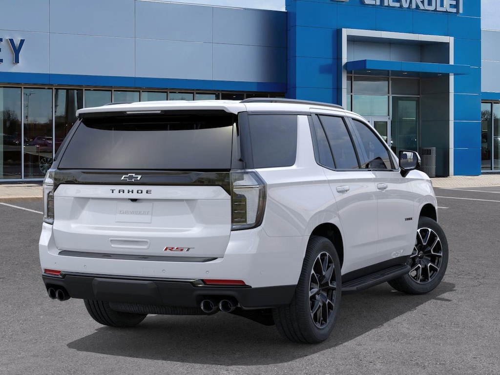 Summit White 2026 Chevrolet Tahoe RST 4WD 10-Speed Automatic with Overdrive EcoTec3 5.3L V8 1st and 2nd Row Color-Keyed Carpeted Floor Mats, 2-Speed Active Electronic AutoTrac Transfer Case, 2-Way Power Driver Lumbar Seat Adjuster, 2-Way Power Front Passenger Lumbar Seat Adjuster, 2nd Row Power Release 60/40 Split-Folding Bench Seat, 3-Spoke Wrapped Steering Wheel, 3.23 Rear Axle Ratio, 3rd Row 60/40 Power-Folding Split-Bench Seat, 3rd Row Manual 60/40 Split-Folding Bench Seats, 3rd row seats: split-bench, 4-Wheel Disc Brakes, 6 Speakers, 6-Speaker Audio System Feature, 8-Way Power Driver Seat Adjuster, 8-Way Power Front Passenger Seat Adjuster, ABS brakes, Advanced Trailering Package, Air Conditioning, Alloy wheels, AM/FM radio: SiriusXM with 360L, Apple CarPlay/Android Auto, Auto High-beam Headlights, Auto-Dimming Inside Rear-View Mirror, Auto-dimming Rear-View mirror, Automatic temperature control, Blind Zone Steering Assist with Trailering, Bose 10-Speaker Centerpoint Surround Audio System Feature, Brake assist, Bright Front and Rear Door Sill Plates, Bumpers: body-color, Color-Keyed Carpeting Floor Covering, Comfort Package, Compass, Delay-off headlights, Driver door bin, Driver vanity mirror, Dual Exhaust System, Dual front impact airbags, Dual front side impact airbags, Dual-Pane Power Panoramic Sunroof, Electronic Stability Control, Emergency communication system: OnStar and Chevrolet connected services capable, Exterior Parking Camera Rear, Floor Console with Storage Area, Four wheel independent suspension, Front anti-roll bar, Front Bucket Seats, Front Center Armrest, Front dual zone A/C, Front fog lights, Front LED Fog Lamps, Front reading lights, Frontal Driver and Outboard Passenger Airbags, Fully automatic headlights, Garage door transmitter, Heated 2nd Row Outboard Seats, Heated door mirrors, Heated Driver and Front Passenger Seats, Heated front seats, Heated Steering Wheel, Hill Descent Control, Hitch View with Pan/Zoom Image Adjustment, Illuminated entry, Integrated Trailer Brake Controller, Interior Camera, Key Card, LED Headlamps with LED Daytime Running Lamps, LED Tail Lamps, Low tire pressure warning, Max Trailering Package, Memory seat, Memory Settings, Memory Settings For Driver, Navigation system: Google built-in compatibility (select service plan required, terms and limitations apply), Occupant sensing airbag, Outside Heated Power-Adjustable Mirrors, Outside temperature display, Overhead airbag, Overhead console, Panic alarm, Passenger door bin, Passenger vanity mirror, Perforated Leather Seat Trim, Power door mirrors, Power driver seat, Power Liftgate, Power passenger seat, Power Release 2nd Row Bucket Seats, Power steering, Power windows, Premium audio system: Chevrolet Infotainment 3 Premium, Premium Smooth Ride Suspension, Radio data system, Radio: 17.7 Diagonal Advanced Color LCD Display, Rain sensing wipers, Rear air conditioning, Rear anti-roll bar, Rear Power Liftgate, Rear reading lights, Rear seat center armrest, Rear window defroster, Rear window wiper, Remote keyless entry, Remote Start, RST Exterior Features, Security system, Set of 4 Wheel Locks, SiriusXM with 360L Trial Subscription, Smart Trailer Integration Indicator, Speed control, Speed-sensing steering, Split folding rear seat, Spoiler, Steering wheel mounted audio controls, Tachometer, Telescoping steering wheel, Tilt steering wheel, Traction control, Trip computer, Universal Home Remote, USB Ports, Variably intermittent wipers, Voltmeter, Wheels: 22 x 9 Bright Machined, Wireless Phone Charging.