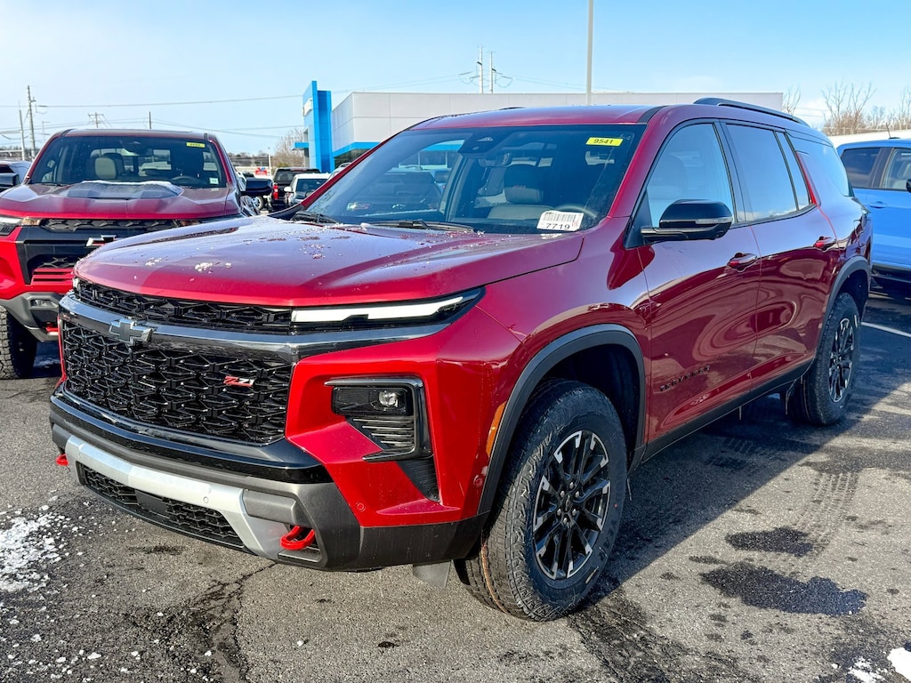 Radiant Red 2026 Chevrolet Traverse Z71 AWD 8-Speed Automatic 2.5L DOHC 3rd row seats: split-bench, 4-Way Manual Front Passenger Seat Adjuster, 4-Wheel Disc Brakes, 6 Speakers, 6-Speaker Audio System Feature, 8-Way Power Driver Seat Adjuster, ABS brakes, Active Noise Cancellation, Air Conditioning, Alloy wheels, AM/FM radio: SiriusXM with 360L, Apple CarPlay/Android Auto, Auto High-beam Headlights, Automatic temperature control, Bose Premium 12-Speaker Audio System Feature, Brake assist, Child-Seat-Sensing Airbag, Compass, Delay-off headlights, Driver Attention Assist, Driver Confidence Package, Driver door bin, Driver vanity mirror, Dual front impact airbags, Dual front side impact airbags, Electronic Stability Control, Emergency communication system: OnStar, Enhanced Automatic Parking Assist, Enhanced Driving Package, Evotex Seat Trim, Four wheel independent suspension, Front anti-roll bar, Front Bucket Seats, Front Center Armrest, Front dual zone A/C, Front reading lights, Fully automatic headlights, HD Surround Vision, Heated door mirrors, Heated Driver and Front Passenger Seats, Heated front seats, Heated steering wheel, Illuminated entry, Key Card, Low tire pressure warning, Navigation System, Occupant sensing airbag, Outside temperature display, Overhead airbag, Overhead console, Panic alarm, Passenger door bin, Passenger vanity mirror, Power door mirrors, Power driver seat, Power Liftgate, Power Outlet, Power steering, Power windows, Radio data system, Radio: : Audio System w/17.7 Diagonal Display, Rear air conditioning, Rear anti-roll bar, Rear Camera Mirror, Rear Pedestrian Alert, Rear reading lights, Rear window defroster, Rear window wiper, Remote keyless entry, Security system, SiriusXM with 360L Trial Subscription, Speed control, Speed-sensing steering, Spoiler, Steering wheel mounted audio controls, Super Cruise, Tachometer, Telescoping steering wheel, Tilt steering wheel, Traction control, Traffic Sign Recognition, Trip computer, Turn signal indicator mirrors, Variably intermittent wipers, Voltmeter, Wheels: : 18 High Gloss Black Painted Aluminum.