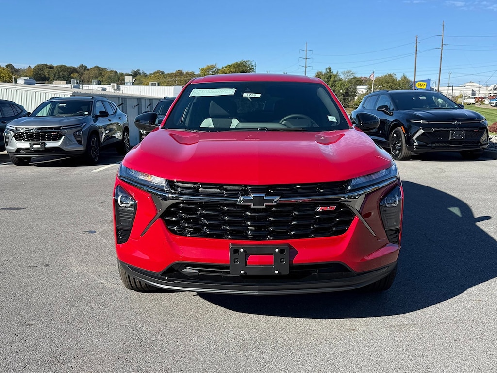 Red 2026 Chevrolet Trax 1RS FWD 6-Speed Automatic ECOTEC 1.2L Turbo 2-Way Adjustable Front Head Restraints, 3.50 Final Drive Axle Ratio, 4 Speakers, 4-Speaker Audio System Feature, 4-Way Manual Front Passenger Seat Adjuster, 4-Wheel Disc Brakes, 6-Way Manual Driver Seat Adjuster, ABS brakes, Air Conditioning, Alloy wheels, AM/FM radio: SiriusXM, Auto High-beam Headlights, Brake assist, Bumpers: body-color, Cloth Seat Trim, Compass, Delay-off headlights, Driver Confidence Package, Driver door bin, Driver vanity mirror, Dual front impact airbags, Dual front side impact airbags, Electronic Stability Control, Emergency communication system: OnStar One Essentials, Exterior Parking Camera Rear, Front & Rear Custom Molded Splash Guards, Front & Rear Jet Black All-Weather Floor Liners (LPO), Front anti-roll bar, Front Bucket Seats, Front Center Armrest, Front reading lights, Front wheel independent suspension, Fully automatic headlights, Heated door mirrors, Heated Driver & Front Passenger Seats, Heated front seats, Heated steering wheel, Illuminated entry, Lane Change Alert w/Side Blind Zone Alert, Leather steering wheel, License Plate Front Mounting Package, Low tire pressure warning, Mobile Service Plus, Occupant sensing airbag, Outside temperature display, Overhead airbag, Overhead console, Panic alarm, Passenger door bin, Passenger vanity mirror, Power door mirrors, Power steering, Power windows, Preferred Equipment Group 1RS, Premium audio system: Chevrolet Infotainment 3, Radio data system, Radio: Chevrolet Infotainment 3 System w/AM/FM, Rear Cross Traffic Alert, Rear Park Assist, Rear window defroster, Rear window wiper, Remote keyless entry, Security system, SiriusXM Trial Subscription, Speed control, Split folding rear seat, Spoiler, Sport steering wheel, Steering wheel mounted audio controls, Tachometer, Telescoping steering wheel, Tilt steering wheel, Traction control, Trip computer, Variably intermittent wipers, Wheels: 18 Black-Painted Machined Aluminum, Wireless Apple CarPlay/Wireless Android Auto.