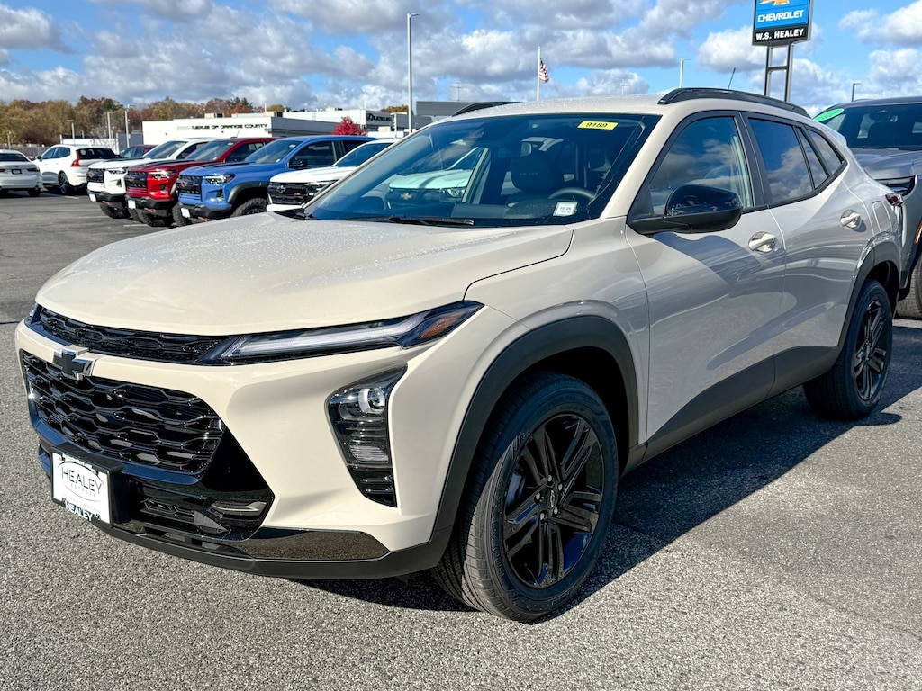 White 2026 Chevrolet Trax ACTIV FWD 6-Speed Automatic ECOTEC 1.2L Turbo 2-Way Adjustable Front Head Restraints, 2-Way Power Driver Lumbar Seat Adjuster, 3.50 Final Drive Axle Ratio, 4-Way Manual Front Passenger Seat Adjuster, 4-Wheel Disc Brakes, 6 Speakers, 6-Speaker Audio System Feature, 8-Way Power Driver Seat Adjuster, ABS brakes, Adaptive Cruise Control, Air Conditioning, Alloy wheels, AM/FM radio: SiriusXM, Auto High-beam Headlights, Automatic temperature control, Brake assist, Bumpers: body-color, Compass, Delay-off headlights, Deleted Mobile Service Plus, Driver Confidence Package, Driver door bin, Driver vanity mirror, Dual front impact airbags, Dual front side impact airbags, Electronic Stability Control, Emergency communication system: OnStar One Essentials, Evotex Seat Trim, Exterior Parking Camera Rear, Front and Rear Jet Black All-Weather Floor Mats, Front anti-roll bar, Front Bucket Seats, Front Center Armrest, Front reading lights, Front wheel independent suspension, Fully automatic headlights, Heated door mirrors, Heated Driver and Front Passenger Seats, Heated front seats, Heated steering wheel, Illuminated entry, Lane Change Alert with Side Blind Zone Alert, Leather steering wheel, License Plate Front Mounting Package, Low tire pressure warning, Occupant sensing airbag, Outside temperature display, Overhead airbag, Overhead console, Panic alarm, Passenger door bin, Passenger vanity mirror, Power door mirrors, Power driver seat, Power steering, Power windows, Preferred Equipment Group 1SA, Premium audio system: Chevrolet Infotainment 3, Radio data system, Radio: AM/FM Stereo Audio System, Rear Cross Traffic Alert, Rear Park Assist, Rear window defroster, Rear window wiper, Remote keyless entry, Security system, SiriusXM Trial Subscription, Speed control, Split folding rear seat, Spoiler, Steering wheel mounted audio controls, Tachometer, Telescoping steering wheel, Tilt steering wheel, Traction control, Trip computer, Variably intermittent wipers, Wheels: 18 Black-Painted Aluminum, Wireless Apple CarPlay/Wireless Android Auto.