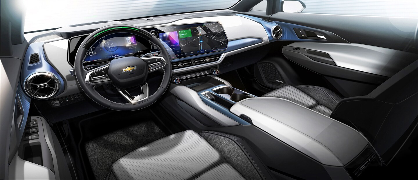 The 2026 Chevrolet Equinox EV boasts a sleek and aerodynamic exterior design that turns heads wherever it goes. The LED headlamps with LED daytime running lamps provide excellent visibility and add a modern touch to the front fascia. The available 21-inch aluminum wheels and panoramic sunroof further enhance the Equinox EV's striking appearance, making it a standout choice in the electric SUV segment.
