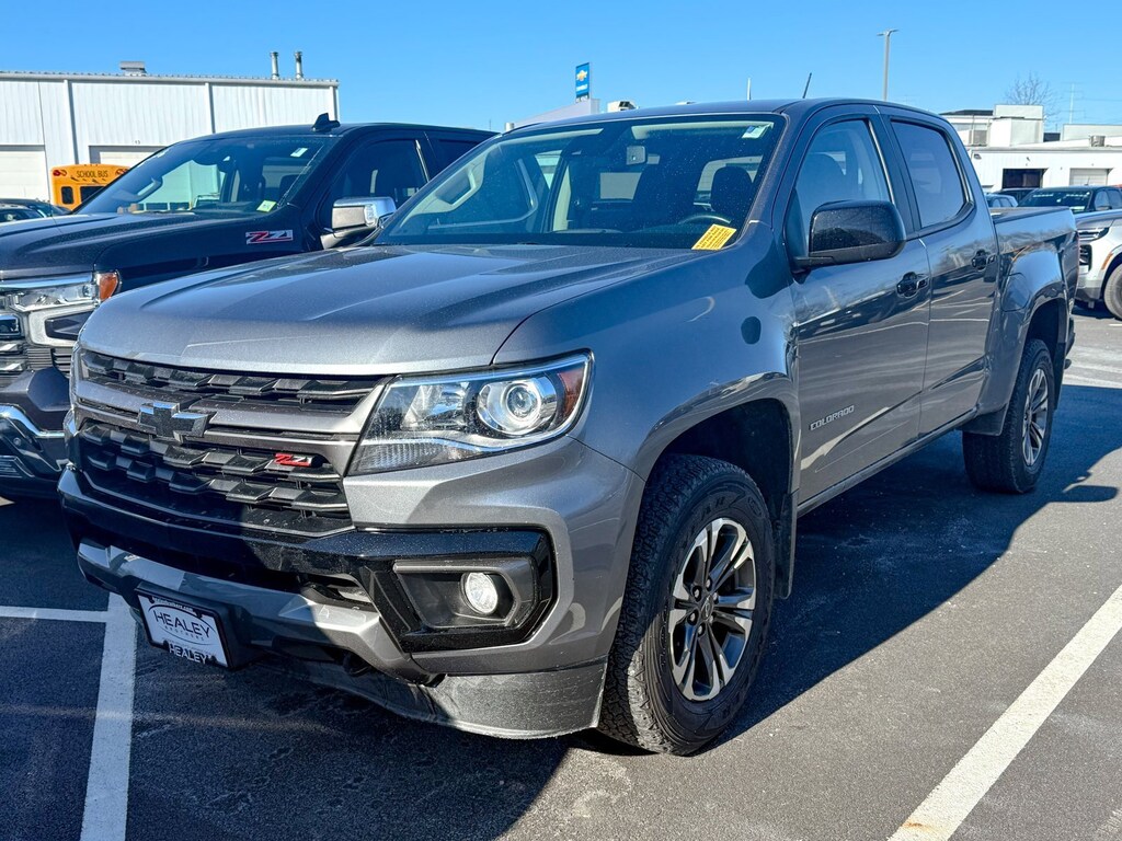 Satin Steel Metallic 2022 Chevrolet Colorado Z71 4WD 8-Speed Automatic V6 Forward Collision Alert, Heavy-Duty Trailering Package, Lane Departure Warning System, Safety Package, 3.42 Rear Axle Ratio, 4-Wheel Disc Brakes, 6 Speakers, 6-Speaker Audio System Feature, ABS brakes, Air Conditioning, Alloy wheels, AM/FM radio: SiriusXM, Apple CarPlay/Android Auto, Auto-dimming Rear-View mirror, Automatic temperature control, Bumpers: body-color, Cloth/Leatherette Seat Trim, Compass, Delay-off headlights, Driver 6-Way Power Seat Adjuster, Driver door bin, Driver vanity mirror, Dual front impact airbags, Dual front side impact airbags, Electronic Stability Control, Exterior Parking Camera Rear, Front & Rear Splash Guards, Front anti-roll bar, Front Bucket Seats, Front Center Armrest, Front fog lights, Front License Plate Kit, Front reading lights, Front wheel independent suspension, Fully automatic headlights, HD Radio, Heated door mirrors, Heated steering wheel, Hitch Guidance, Illuminated entry, Integrated Trailer Brake Controller, Low tire pressure warning, Not Equipped w/Heated Front Seats, Not Equipped w/Rear Park Assist, Occupant sensing airbag, Outside temperature display, Overhead airbag, Overhead console, Panic alarm, Passenger door bin, Passenger vanity mirror, Power door mirrors, Power Driver Lumbar Control Seat Adjuster, Power driver seat, Power steering, Power windows, Preferred Equipment Group 4Z7, Premium audio system: Chevrolet Infotainment 3 Plus, Radio data system, Radio: Chevrolet Infotainment 3 Plus System, Rear reading lights, Rear seat center armrest, Rear step bumper, Rear window defroster, Remote keyless entry, Security system, SiriusXM Radio, Speed control, Speed-sensing steering, Steering wheel mounted audio controls, Tachometer, Telescoping steering wheel, Tilt steering wheel, Tow/Haul Mode, Traction control, Trip computer, Ultrasonic Rear Park Assist, Variably intermittent wipers, Wheels: 17 x 8 Bright Machined Aluminum, Wireless Charging for Compatible Cell Phones, One Owner, Forward Collision Alert, Heavy-Duty Trailering Package, Lane Departure Warning System, Safety Package.