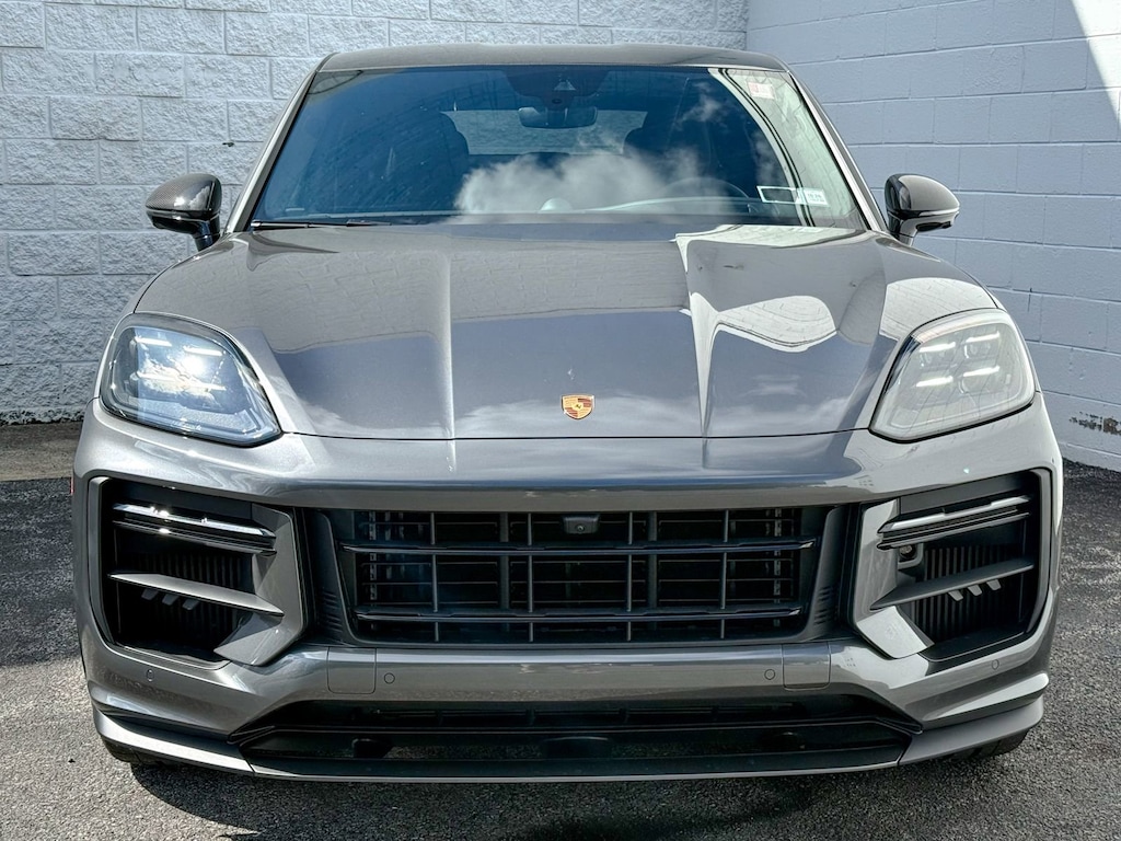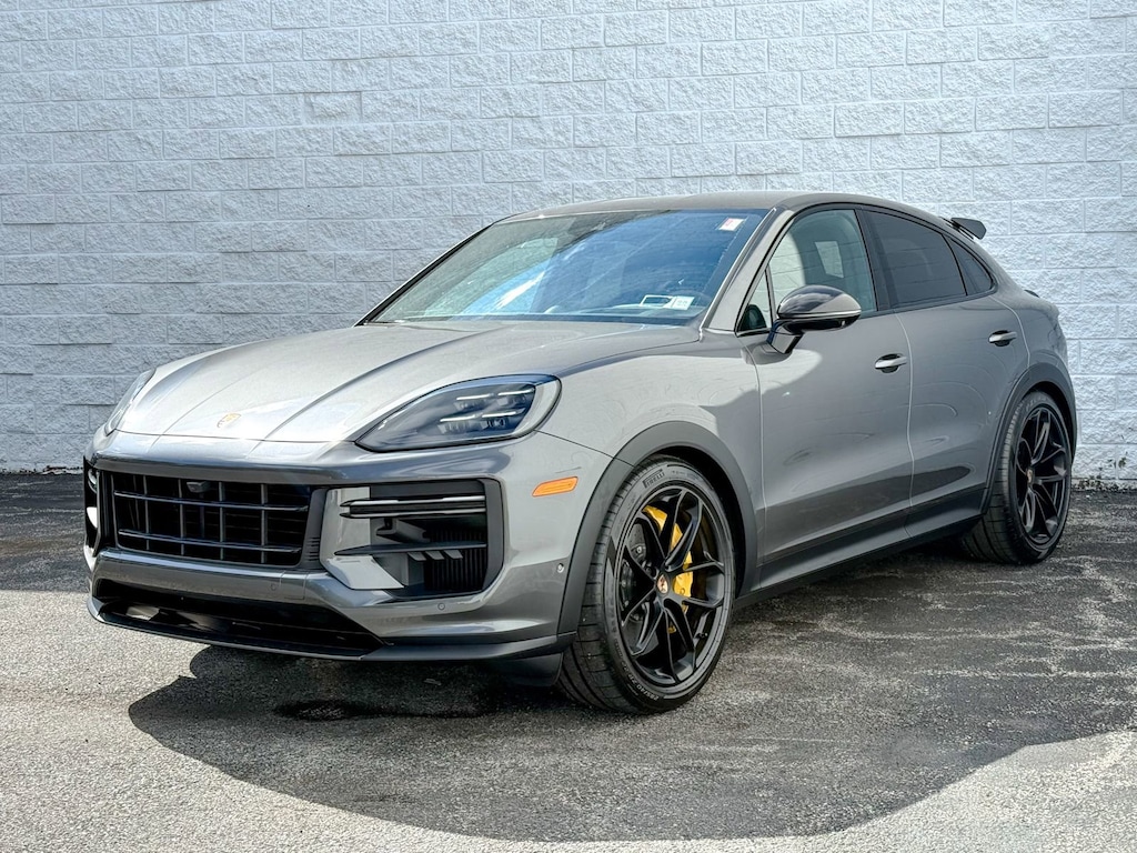 Quartzite Grey Metallic 2026 Porsche Cayenne Coupe Turbo GT AWD 8-Speed Automatic with Tiptronic V8 14 Speakers, 4-Wheel Disc Brakes, 8-Way Sport Seats, ABS brakes, Adaptive suspension, Air Conditioning, Alloy wheels, AM/FM radio: SiriusXM w/360L, Apple CarPlay & Android Auto, Audio memory, Auto High-beam Headlights, Auto-dimming door mirrors, Auto-dimming Rear-View mirror, Auto-leveling suspension, Automatic temperature control, Brake assist, Bumpers: body-color, Ceramic disc brakes: front and rear, Compass, Delay-off headlights, Driver door bin, Driver vanity mirror, Dual front impact airbags, Dual front side impact airbags, Electronic Stability Control, Exterior Parking Camera Rear, Four wheel independent suspension, Front anti-roll bar, Front Bucket Seats, Front Center Armrest, Front dual zone A/C, Front reading lights, Fully automatic headlights, Garage door transmitter: HomeLink, Heated door mirrors, Heated front seats, Heated rear seats, Heated steering wheel, HVAC memory, Illuminated entry, Knee airbag, Leather/Race-Tex Seat Trim with Deviated Stitching, Low tire pressure warning, Memory seat, Navigation System, Occupant sensing airbag, Outside temperature display, Overhead airbag, Overhead console, Panic alarm, Passenger door bin, Passenger vanity mirror, Porsche Communication Management, Power door mirrors, Power driver seat, Power Liftgate, Power passenger seat, Power steering, Power windows, Radio data system, Rain sensing wipers, Rear anti-roll bar, Rear fog lights, Rear reading lights, Rear seat center armrest, Rear side impact airbag, Rear window defroster, Remote keyless entry, Security system, Speed control, Speed-sensing steering, Split folding rear seat, Spoiler, Sport steering wheel, Steering wheel mounted audio controls, Tachometer, Telescoping steering wheel, Tilt steering wheel, Traction control, Trip computer, Turn signal indicator mirrors, Variably intermittent wipers, Voltmeter, Wheels: 22 GT Design in Satin Neodyme.